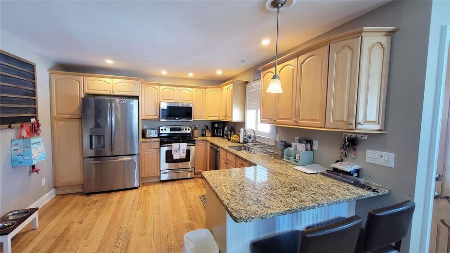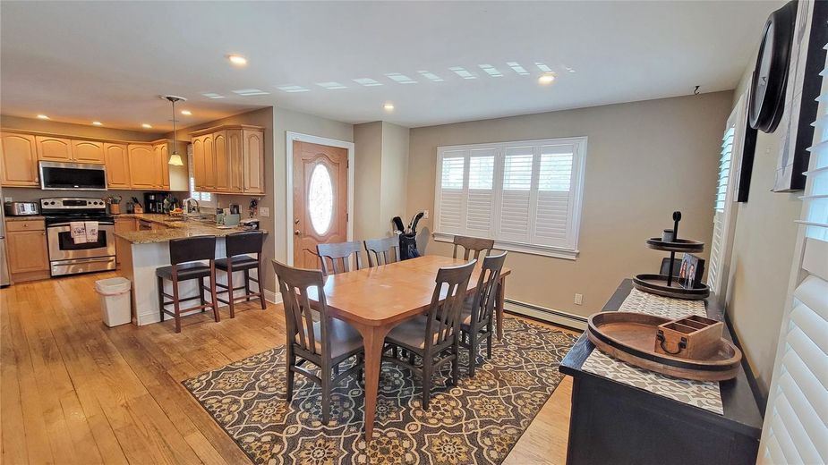 Two-Story South Sayville Home! a short stroll to the water, this beautiful three-bedroom, two-bathroom home offers the perfect blend of comfort, style, and outdoor living with a charming covered front porch.