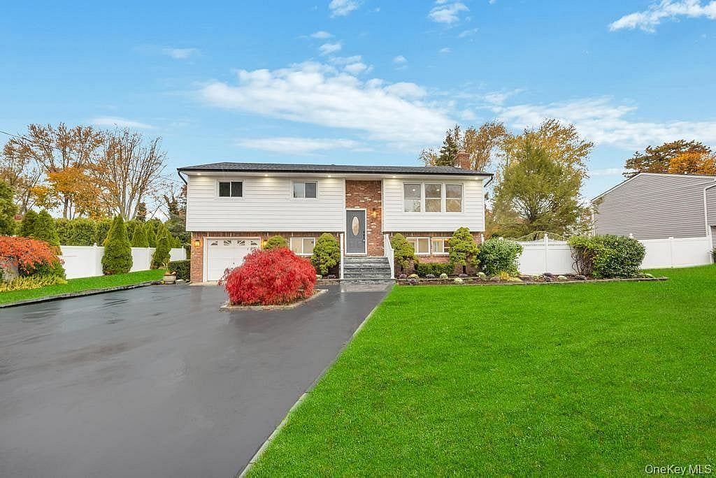 Beautifully renovated Hi-Ranch in Dix Hills, located within the prestigious Half Hollow Hills School District. This highly sought-after home has been completely updated with high-end finishes and custom moldings throughout. Featuring a new roof, siding, windows, and gutters, this residence combines modern upgrades with timeless style. Inside, enjoy gleaming hardwood floors, a modern open-concept layout, and luxurious designer details that offer the perfect blend of elegance and functionality. The home also includes a 1-car garage and a large driveway with parking for up to 4 cars. Step outside to your private backyard oasis with an inground pool, ideal for entertaining or relaxing. This move-in-ready home is conveniently close to top-rated schools, shopping, dining, and major roadways.