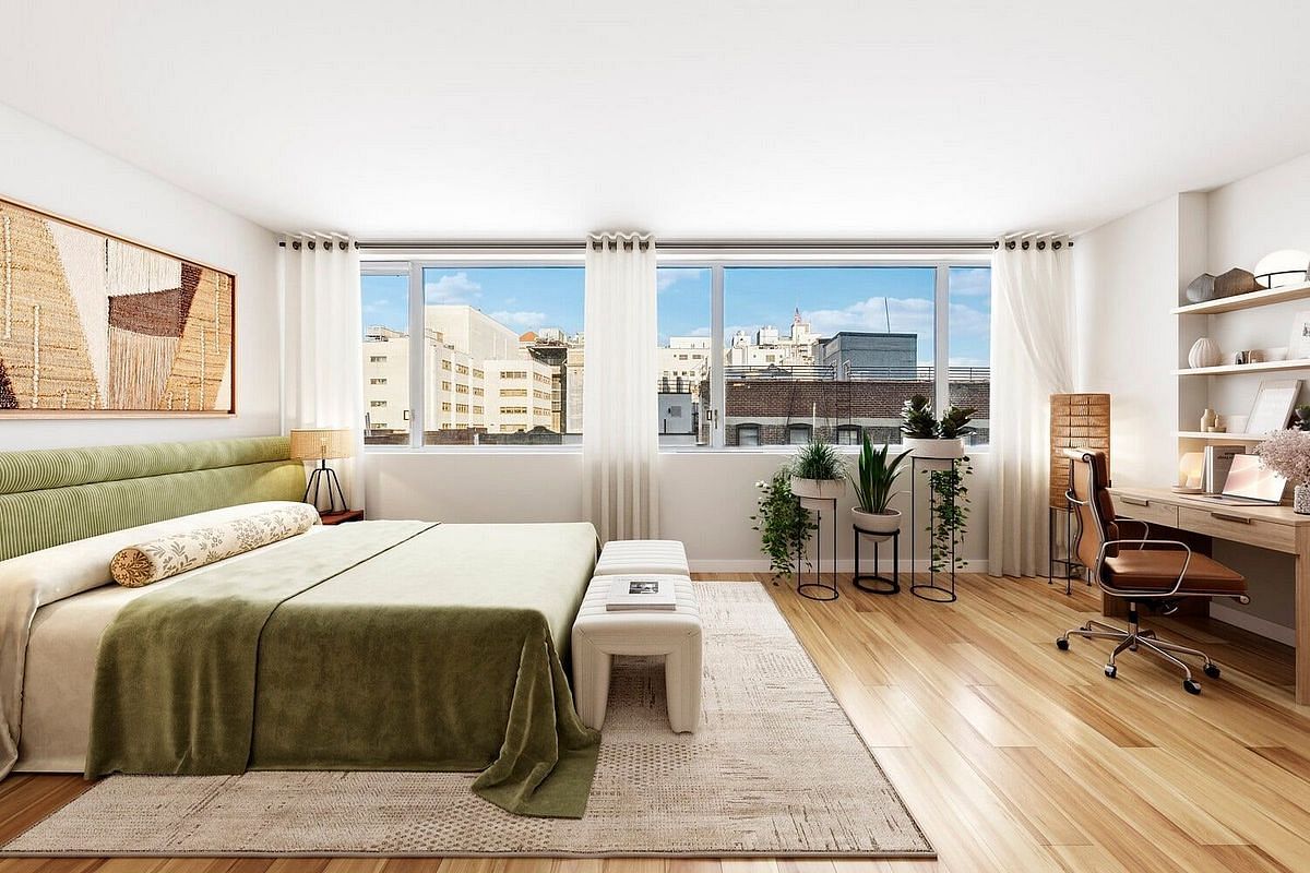 Located on the 9th floor, this exceptional alcove studio provides a peaceful retreat above the city. Bathed in natural light, the home enjoys expansive northern views of the Manhattan skyline through newly installed windows, creating a striking and tranquil backdrop throughout the day. The open concept layout seamlessly accommodates living and dining, with ample room for a dedicated home office. Abundant closet space further enhances both comfort and functionality.