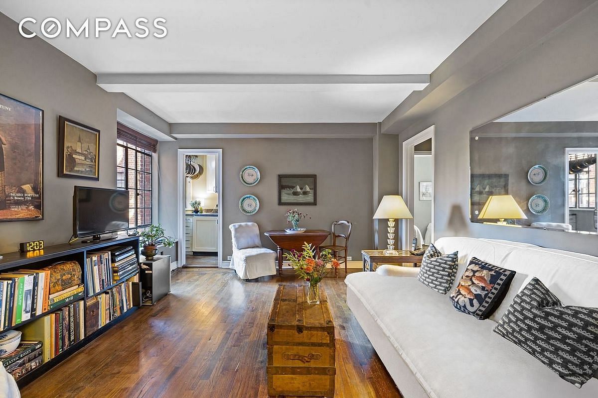 A gracious slate lobby lined with stained glass windows leads directly to the ninth floor 2-Bedroom, 1-Bath apartment that looks south over Tudor City Greens.