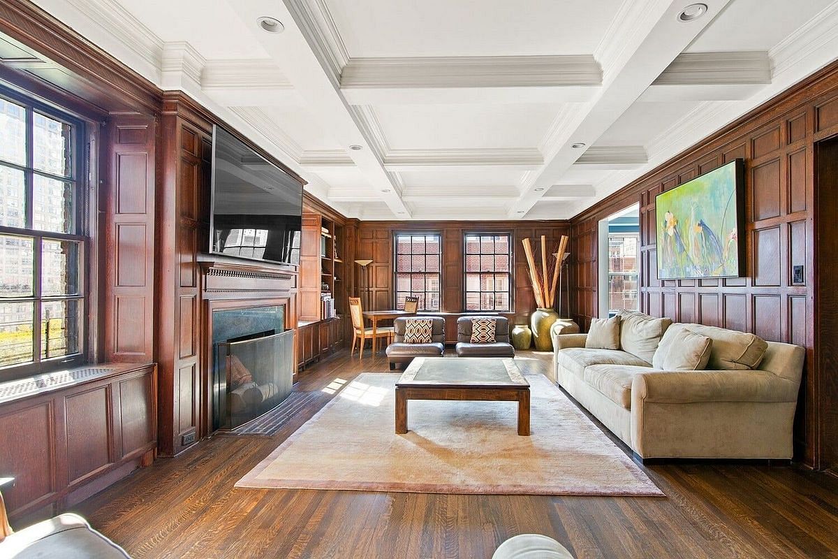 Set along a quiet, tree-shaded stretch of East 68th Street, the apartment enjoys the charm of a classic residential block while offering every modern comfort. The elevator opens directly into a welcoming entry hall that flows toward a sweeping corner living room. Detailed wood paneling, a wood-burning fireplace, and broad southern and eastern exposures bring warmth and light to the space. The adjoining dining room is perfectly proportioned for large gatherings, and the thoughtfully renovated kitchen includes professional-grade Wolf appliances, double ovens, two sinks, a substantial island, and abundant storage. A cozy den and windowed powder room complete the main floor.