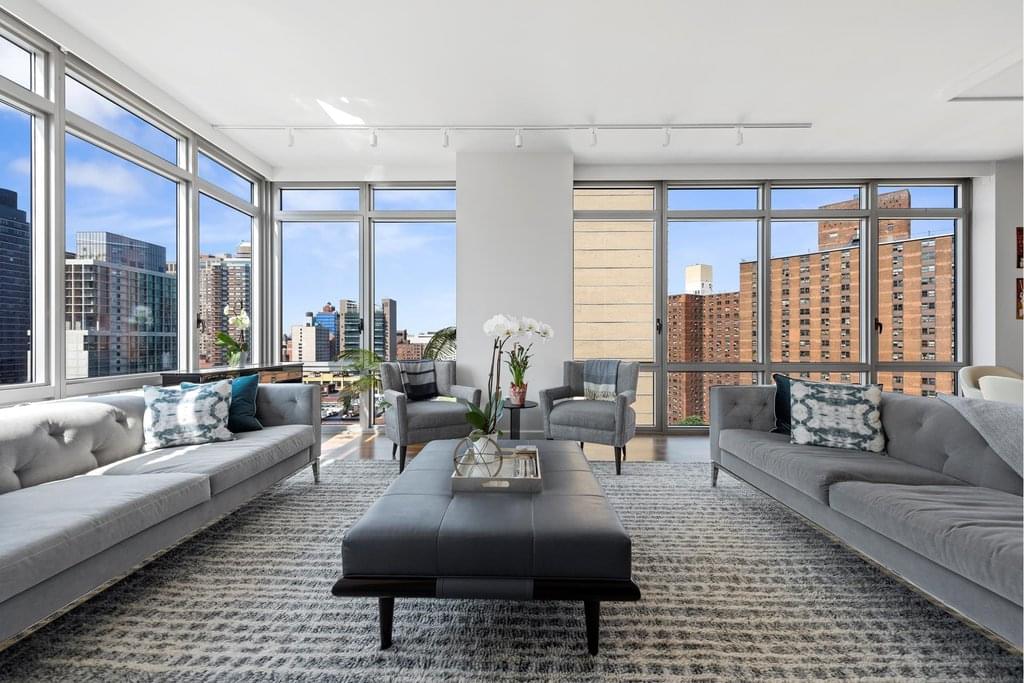 At 1,818 square feet, this three bedroom, three bathroom residence offers 10-foot ceilings, floor-to-ceiling windows, and sweeping views of the East River and Manhattan cityscape. An open-layout chefs kitchen, featuring professional-grade appliances by Viking and Bosch, and loft-like living room and dining area provide the perfect setting for entertaining both family and friends. The spacious primary bedroom boasts an oversized walk-in closet and spa-like bathroom appointed with Blue de Savoie and Stellar White marbles. Additional bedrooms offer en suite bathrooms finished in Zebrano Bianco porcelain and Zuma soaking tubs. The living room and bedrooms feature customized built-in storage and California Closets. This residence also features a stackable Bosch washer/dryer. Service abounds at the Azure which features a 24 hour doorman, cold storage, and live-in resident manager. Amenities include two landscaped roof decks, bike room, 24 hour gym outfitted with TechnoGym equipment, game room with Wi-Fi, residents lounge, conference/dining room with adjacent kitchen and a stunning 1,500SF childrens playroom. Maintenance/CC includes all real estate taxes and is currently eligible for 56% tax deductibility. The Condop operating under condominium by-laws allows for subletting from first day of ownership and does not require a board interview.