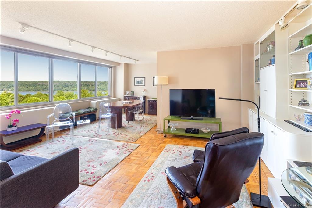 REGAL LIVING WITH RIVER VIEWS Majestic Hudson River views are yours from every window of this spacious 'Junior 4' home. Situated on a high floor at the Whitehall, one of Riverdale's premier coops, this generously proportioned one-bedroom with windowed dining area boasts south & west exposures, numerous custom built-in's, a beautiful marble bathroom, central air conditioning/heating, hardwood floors and abundant closet space throughout. Conveniently located in the prestigious 'Whitehall', a luxury full service, pet-friendly coop with a porte-cochere entrance and an impressive list of white glove services including 24/7 concierge & doorman, live-in super, porters & an on-premises dry cleaner/valet service. Amenities include a solarium-covered indoor swimming pool with lifeguards & cabanas, a health club/spa with sauna, shower & numerous classes/trainers, an attended & heated parking garage with direct access to the building, laundry room, bike room, storage lockers, a ballroom and a spectacular new 30,000 sq. ft. 'Green Roof' with lush foliage, walking paths, gazebo, fire pit, picnic area, seating and an adjacent children's playground. Across the street from Seton Park with tennis courts & baseball field and a stone's throw from the public library, shopping, dining, cultural venues, houses of worship and numerous public transportation options for easy access to Manhattan. Washer/Dryers permitted with board approval. It doesn't get more splendid than this.