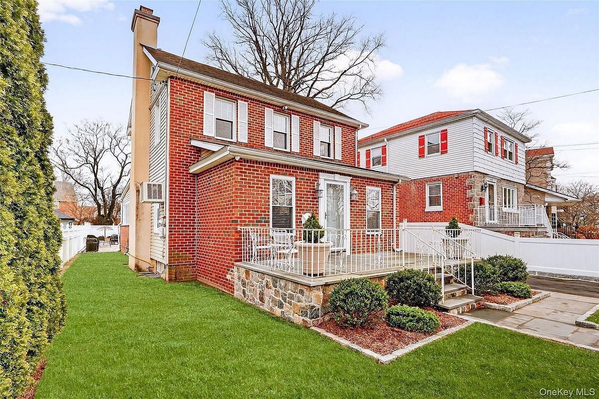 COUNTRY CLUB PROPER - Meticulously maintained detached Colonial home with front, side, and spacious back yard. Luxury living in NYC's best-kept secret! 3334 Country Club Rd exudes sophistication and wraps you in both comfort and functionality the moment you step inside. Upon entry, you will find yourself in a spacious 10 x 20 foyer with classic granite tile flooring and a wall-to-wall closet area. The foyer flows into a formal living room, which features an active gas-burning fireplace with a hand-carved marble mantel and wood inlay flooring. Adjacent to the living room, there is a formal dining room, which in turn leads into an eat-in kitchen. The kitchen incorporates a functional design with a fashionable farmhouse aesthetic. Between the two dining areas, there is no shortage of entertaining options! An oversized family room on this floor, with plenty of panoramic windows and two skylights, provides abundant natural sunlight. This level is complete with a newly remodeled full bathroom, featuring a modern shower stall with a rainfall showerhead and a monochromatic color scheme. High-end Anderson French Doors lead you out to a fully fenced, professionally landscaped, and private back yard, a one-car garage, and a 100 ft. long driveway. Ample parking for the entire household and guests when needed. All four bedrooms are located on the upper floor. A full bathroom with a traditional tub and high-end marble finishes completes the upper level. The full, finished accessory dwelling basement features a 400 sq. ft. open area offering extra space great for various hobbies, parties, or simply as a retreat into serenity. It also sports the washer & dryer, an extra sink, and two large storage areas. Some additional extras include a two-zone yard lawn sprinkler system, a fully alarmed security system with cameras, a supplemental hot water tank, and cedar closet space in the stand-up attic. The unbeatable location, close to the Long Island Sound, Pelham Bay Park, public and private educational and medical institutions, as well as transportation options such as the Bx24, the #6 Pelham Bay train station, and the Bruckner Blvd highway, makes this home a rare find.