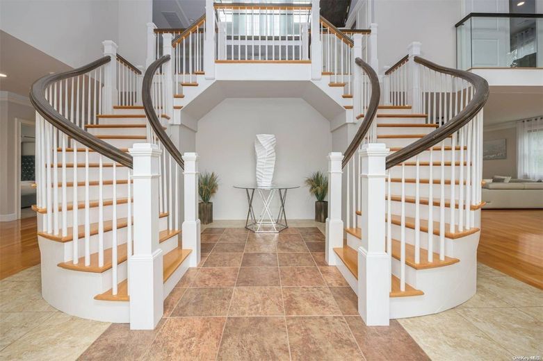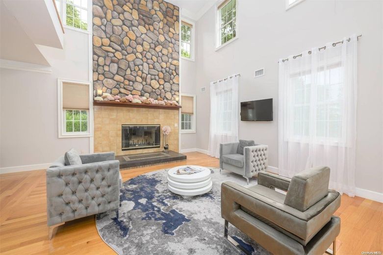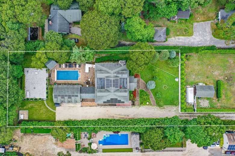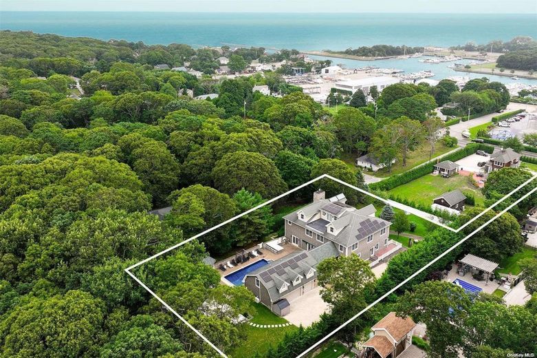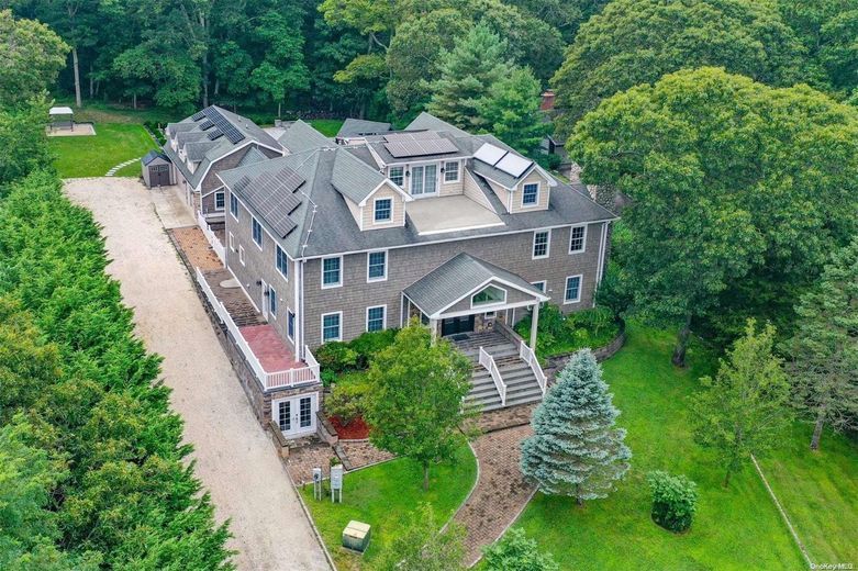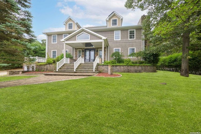 This Residence is perhaps THE LARGEST non-waterfront property in Hampton Bays! Offering over 5,100 Square Feet of Luxurious Living Space, featuring 5 Bedrooms, 6 1/2 Baths, a Fully-Finished Lower Level, and a Spacious Guest Suite above the 3-Car Garage, this home incorporates just about everything you could imagine and desire in a property, within a resort-like setting! The Residence boasts Water Views of the nearby Marina and glistening Peconic Bay, enhancing the natural beauty and setting of the property. From the moment you arrive through the private gated entrance, you will feel a sense of awe and tranquility, and know that this is a very rare and special place indeed! The entrance foyer is both grand and impressive, showcasing a stunning, Architectural double-curved staircase as a centerpiece of the home. On the right side is the Living Room, with a soaring 20 foot ceiling height, captivating your attention with its gorgeous stone fireplace and hearth, making any occasion there one to remember! On the opposite side of the Living Room, there is a Billiard's Room, which may also serve as an alternate formal Dining Room, as well as an adjoining Office/Bonus Room. The tastefully designed Chef's Kitchen, Breakfast Bar and Dining Room are situated toward the rear of the home, enveloped by a wall of glass sliders and windows, allowing for an abundance of natural sunlight, as well as wonderful views of the Pool, Patio, and Private, Landscaped Grounds. The home also features a Laundry Room and Full Bath on the First Floor, for added convenience, as well as Radiant-Heated Floors throughout. On the Second Floor, you will find 4 Guest Ensuite Bedrooms, as well as the Oversized Primary Ensuite, complete with a luxurious, sumptuous Bath and its own Juliet Balcony, overlooking the light-filled Living Room. There is also a convenient Sitting Room perfectly sited between all 5 Bedrooms, ideal for enjoying a morning cup of coffee with your favorite reading material, or simply catching up on your electronic devices. The Fully-Finished Lower Level is a Dream Come True and an Entertainer's Delight, with 3 separate Bonus Rooms, a Recreation Room, Wet Bar, Full Bath and ample Storage. Outdoors, the Beautiful Rear Yard features a Heated Gunite Pool with a stone Fire Pit on the surrounding Patio, a Pool House, and a fully-equipped outdoor Kitchen. Beyond the Pool area, lies another oversized Stone Patio and Bar, ideal for entertaining friends and family alike, while being surrounded by the mature Landscaping and 42 Acres of undeveloped, neighboring Land. Lastly, there is a Covered Breezeway spanning a section of the Patio leading from the Kitchen to the Loft above the 3-Car Garage, which serves well for outdoor dining and protection from inclement weather. The Finished Guest Suite above the Garage is a true bonus, offering over 900 square feet of Living Space! Simply stated, this unique Property offers Style, Space and a Lifestyle very difficult to find in today's market. The Residence is within close proximity to all that makes Hampton Bays so special: Wonderful Waterfront Restaurants, Unparalleled Ocean and Bay Beaches, World-Class Marinas, Plentiful Shops, as well as easy access to points further out east in the Hamptons, and the charming, laid-back atmosphere of the North Fork. Live the lifestyle you so richly deserve! Must See!