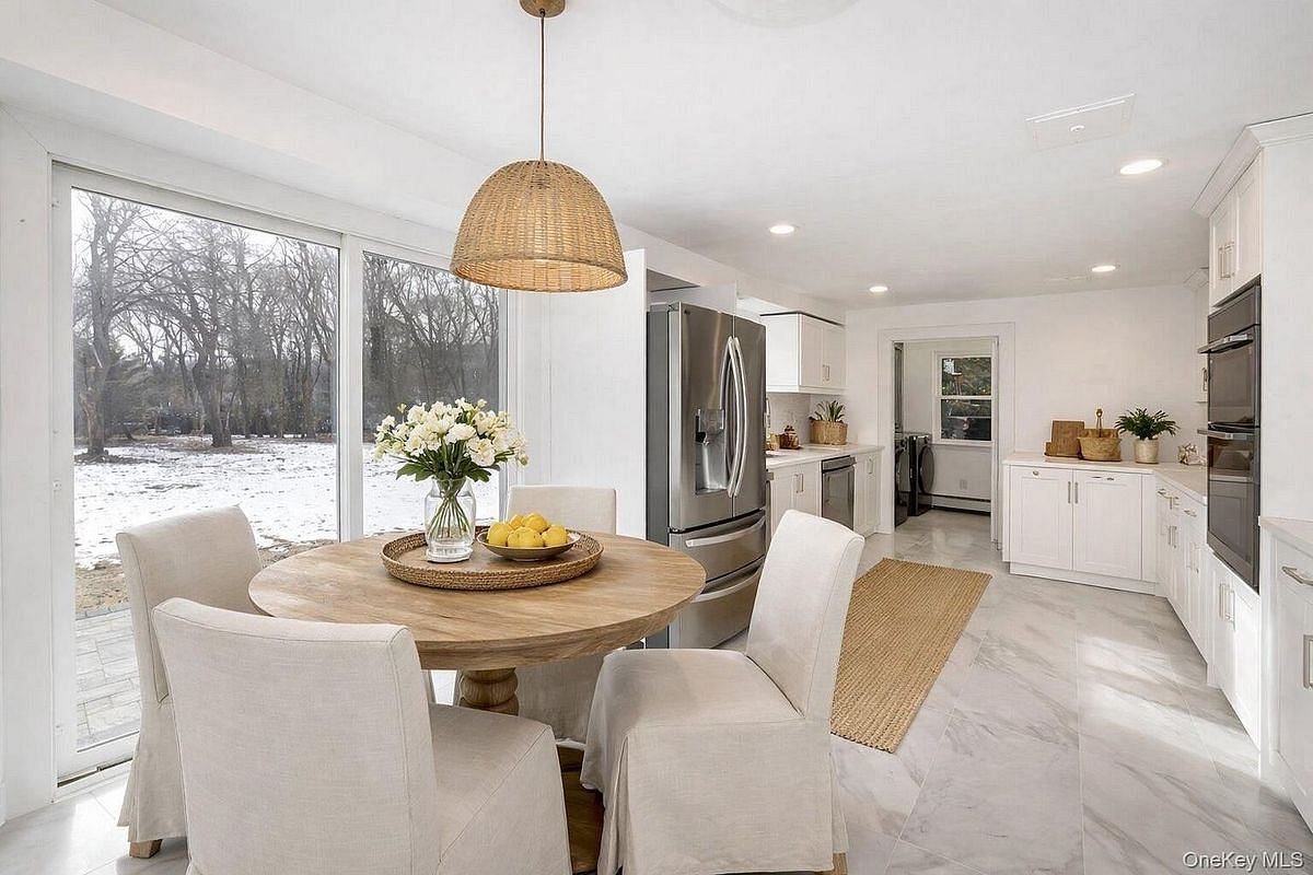 Welcome to 34 Warner Road, Huntington NY. This totally renovated 4 bedroom, 3 full bath home on a level, fenced acre is located in the "Chester Hills" section of Huntington. This BETTER THAN NEW renovation features: new roof w/ all new boards, new circular driveway with belgium block, new CAMBRIDGE paver patio /paver walk way and some brand new fencing (vinyl, aluminum & chain link). Brand new: Central Air Conditioning system, Brand new GAS heating system (new furnace,new H/A baseboards) , Brand new 200 amp Electric system, Brand new Slocomb 500 Series windows, Brand new garage doors w/seeing eye cameras, Brand new double cesspools, Brand new siding, gutters and leaders. The interior features: Brand new Kitchen, baths, floors, new hi hats, new sheetrock, new tiles, new millwork, fresh paint and spacious rooms. The kitchen features quartz counters, gas cooking, LG SS appliances with a spacious pantry/laundry. The primary suite features a huge closet and gorgeous private bath. The kitchen is complete with designer appliances, adjacent pantry/laundry room, sliders to patio/backyard and gas cooking. All 3 new full baths all feature Quartz vanities,LED vanity mirrors, new fixtures and all new tile work. Located close to all and within minutes of shopping, restaurants, Library, parks.