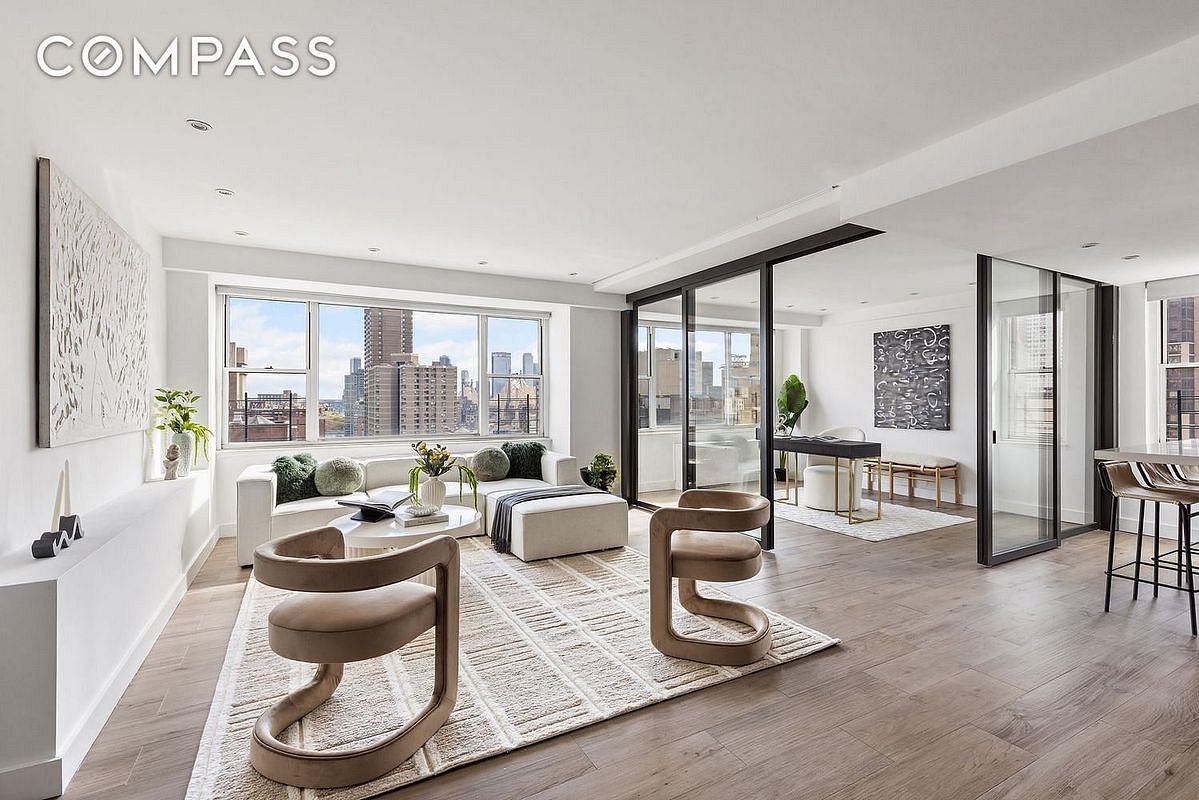 Large South and East-facing windows flood the space with natural light and offer breathtaking open city views and vistas of the East River. Fabulous enlarged open chefs kitchen with two windows, top of the line appliances and a ton of storage space.
