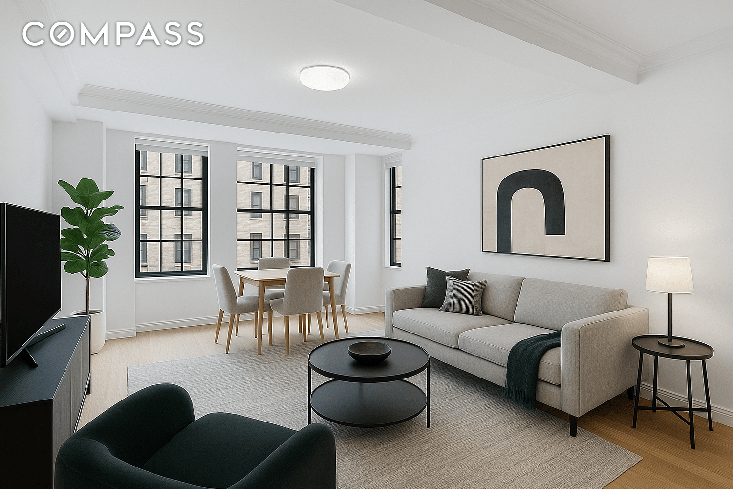 This custom-renovated prewar gem offers a rare blend of historic charm and modern updates. The flexible layout includes a spacious living area with oversized windows, a separate windowed kitchen with beamed ceilings, and a bonus home office or sleeping alcove. Additional highlights include two large closets, hardwood floors, and a beautifully finished marble bath.