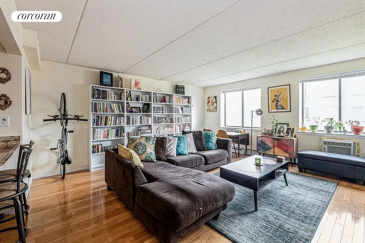 Bright top floor two bedroom, two bath coop with city views. The Palm-Rio coop is pet-friendly and features, a gym, laundry room, parking (waitlist), and a shared outdoor terrace. This home is over 1000 sq ft and features hard wood floors that stretch throughout. The living/dining room is an open concept that flows into galley style kitchen with granite counters and breakfast bar. The bedrooms are spacious, with the main bedroom featuring a walk-in closet & ensuite bathroom. Perfectly located next to The East River Plaza among many other local favorites, including Patsy's & Rao's, as well as, 4 & 6 trains, and M15 buses. Subleasing is permitted after 2 years with board approval.
