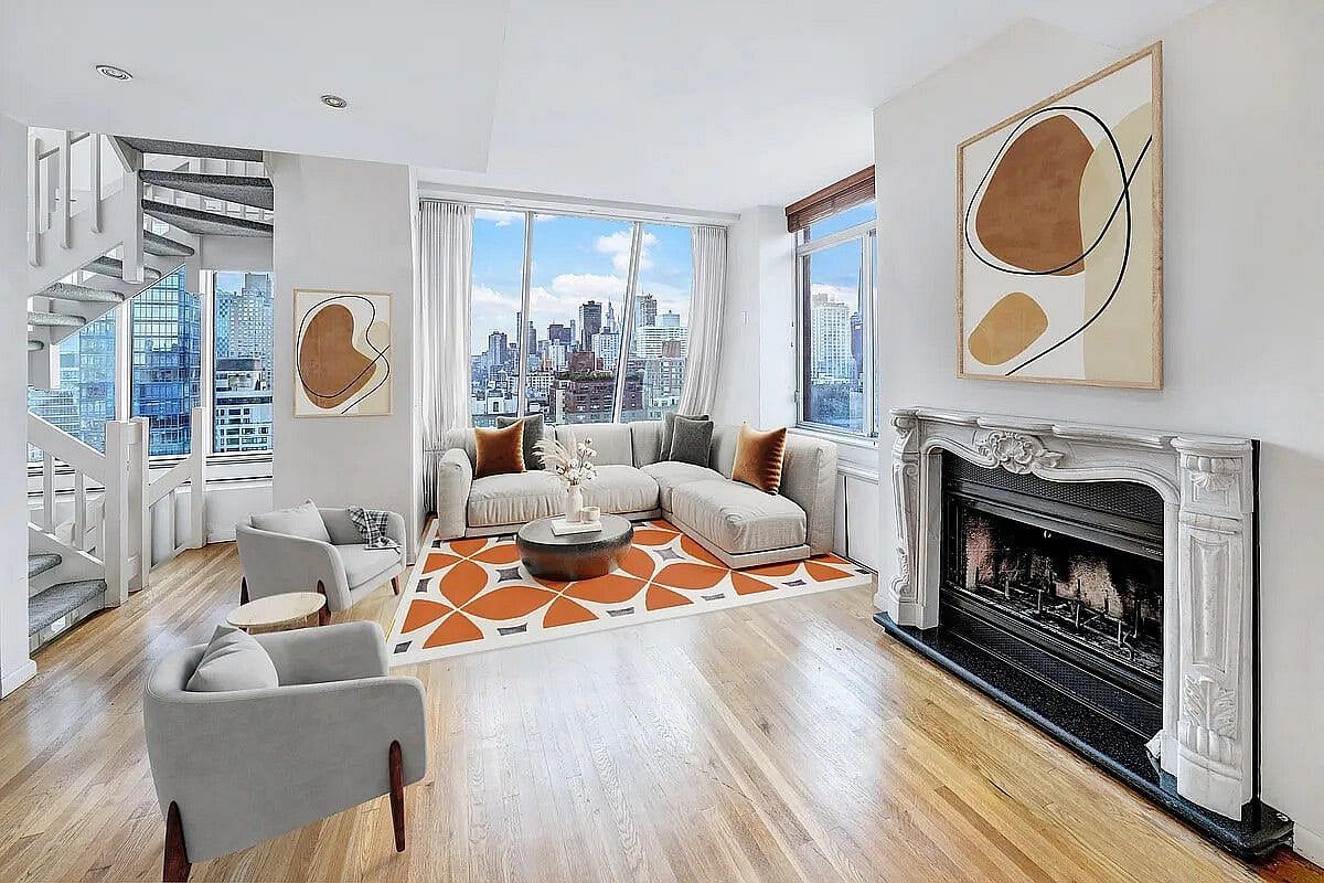 Welcome to 34 PHD, a sprawling 3 bedroom/ 3.5 bath penthouse triplex apartment with staircases, a working wood burning fireplace , chef's kitchen and two separate entrances. Nestled in the vibrant heart of Lenox Hill on Manhattan's coveted Upper East Side, this breathtaking abode offers an unparalleled living experience with panoramic views that stretch across the city skyline. Perched above the treetops, this exceptional residence boasts vistas in every direction, capturing the beauty of the west-facing sunsets and the sunny south-facing city and skyline views. Whether you're gazing out at the sparkling city lights by night or soaking in the sunlight by day, the views are simply unforgettable.