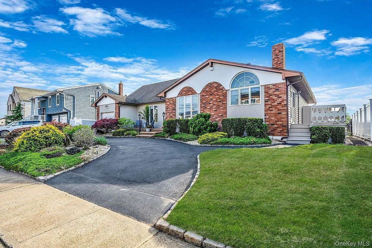 Summer is coming and what better place to live than here!?!? 3,045 sq ft of stay-cation living on an impressive 80ft wide deep canal where summer 2026 can be all about boating days, backyard nights, and a lifestyle that feels like vacation. This expanded 4 bedroom, 2 bath ranch features open, sunlit interiors with an eat-in kitchen that flows into a spacious family room anchored by a dramatic floor-to-vaulted-ceiling 3 sided stone fireplace. Large windows and sliding doors showcase panoramic water views and lead to a generous deck with a pool, creating seamless indoor-outdoor living for everyday enjoyment or easy entertaining. The primary suite provides serene water views, private deck access, and a spa-inspired bath with an oversized soaking tub and separate shower. The exterior truly shines with 80ft of waterfront, a massive floating dock, and multiple slips, currently accommodating a 22-ft boat, a 40-ft boat, and jet skis, offering exceptional space for a variety of water toys. Additional highlights include a garage, circular driveway, manicured landscaping, and expansive windows that frame the tranquil canal setting. This rare property offers a versatile waterfront lifestyle with open views, generous indoor and outdoor spaces, and a layout ideal for relaxing, hosting, and enjoying time on the water.