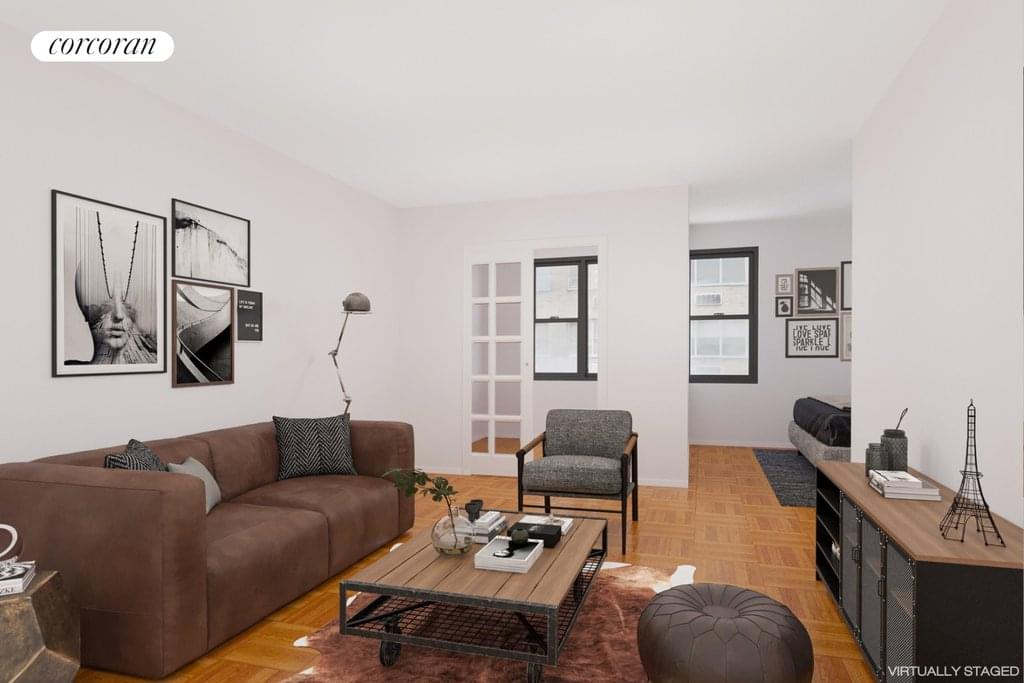 Welcome to apartment 8H at The Elysabeth. This beautiful, expansive alcove studio is in a full service condominium building located on a tree-lined street in the sought after Murray Hill neighborhood. When entering, you are welcomed by 4 large windows enveloping the space with light throughout the day. The living room area is spacious and can easily hold a dining area and large couch. The owner has created an incredible delegated office space sectioned off by French doors. This could also be used as a guest sleeping area if needed. The sleeping alcove ensures that the bedroom area is separated and quiet. Enjoy the abundance of closet space, including a coat closet, and large closets in the living room and bedroom areas. The kitchen as a new compact refrigerator and stove.