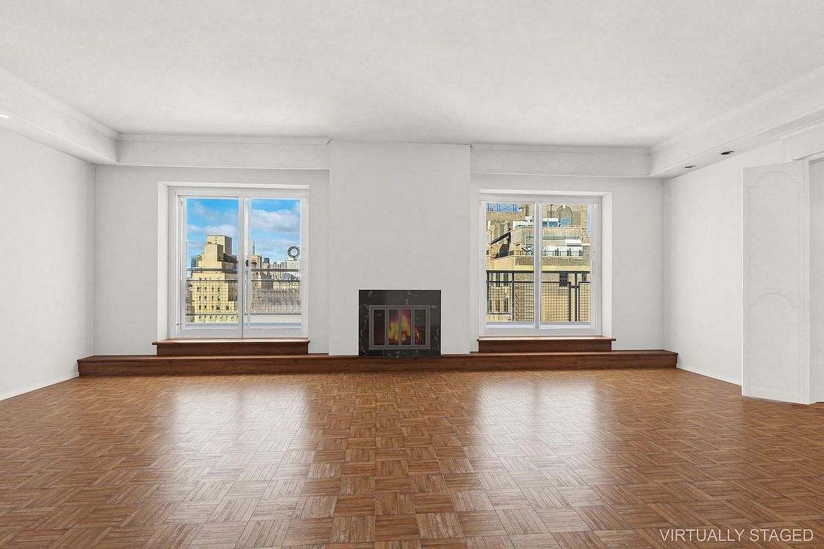 Features include a wood-burning fireplace, central air, 10" Ceilings, and a 56" terrace fronting Madison Avenue with views of the midtown skyline and Central Park, including the Dakota. The living room and 2 of the bedrooms open onto the Terrace.