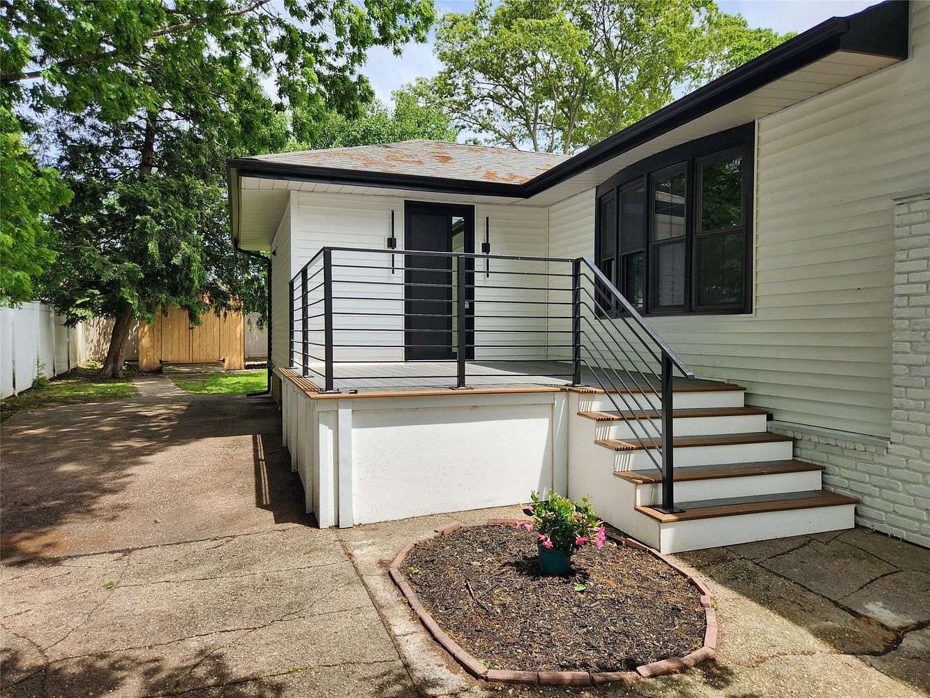 Welcome to this beautifully updated home in the heart of Farmingville, located in the desirable Sachem School District! Set on a flat .17-acre lot with taxes under $9,000/year, this home offers outstanding value and style. Inside, you'll find a spacious layout featuring both a formal dining room and a large living room—perfect for entertaining or relaxing. The stunning open-concept white L-shaped kitchen is outfitted with stainless steel appliances and flows seamlessly into the main living areas. Refinished hardwood floors run throughout, including into the closets and ceilings, with crown molding adding an elegant touch to every room. The home offers 4 generously sized bedrooms and 2 fully renovated bathrooms, along with a convenient mudroom featuring a washer and dryer. Additional updates include fresh interior paint, new siding and gutters, a new front door, and a newly built Trex front porch/deck. The unfinished basement with Bilco door access to the backyard offers excellent storage or future finishing potential. Oil heat, propane cooking, and a recently pumped and treated cesspool this move-in ready gem!
