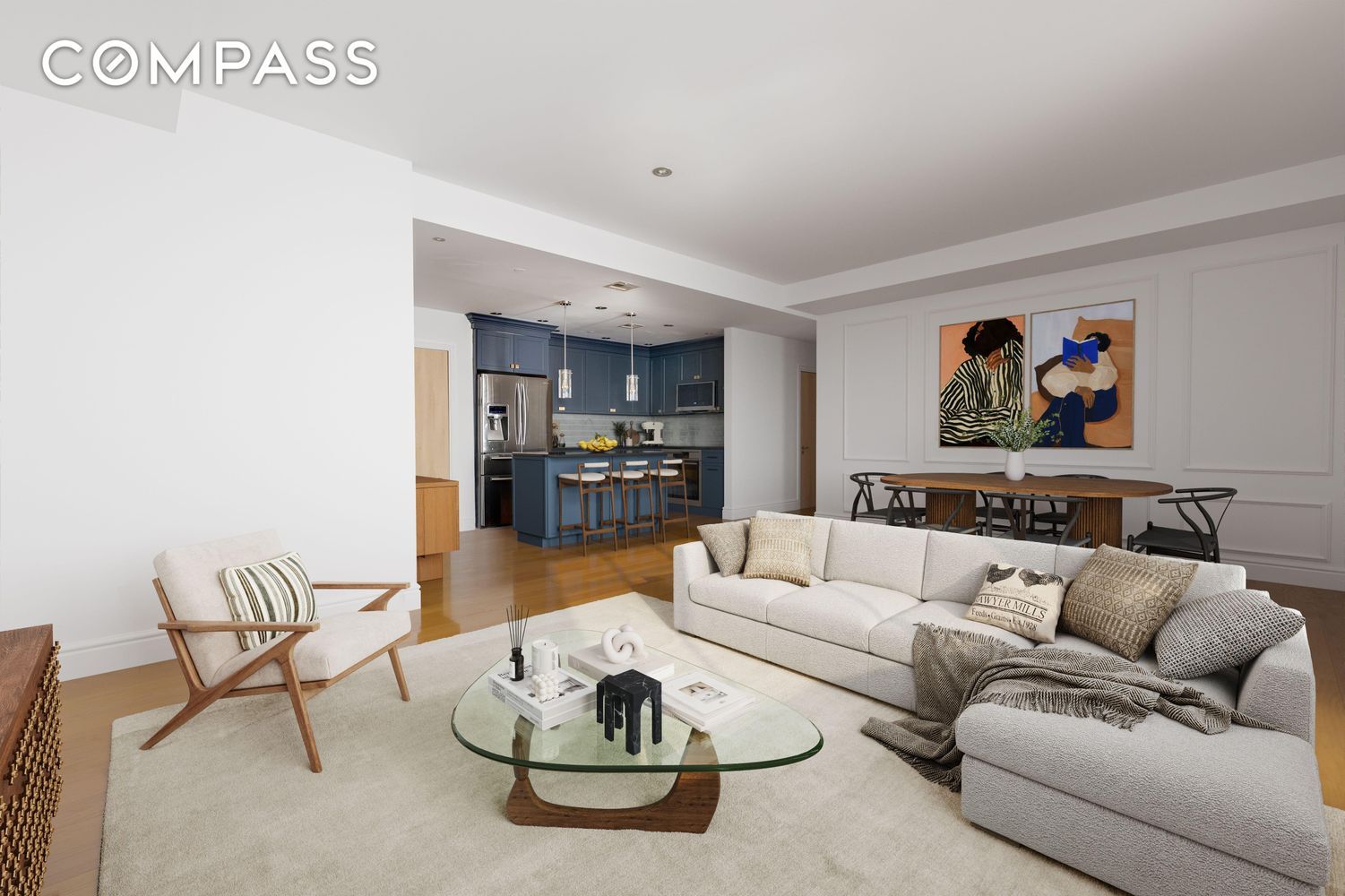 The home features a spacious, open-concept layout, with the living and dining areas flooded with natural light through oversized windows. High ceilings enhance the airy feel, while the private balcony is a perfect retreat for morning coffee or evening relaxation.