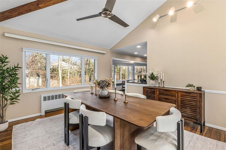 New Listing! Welcome to 35 Wood Valley Lane in Port Washington's Flower Hill neighborhood. This inviting split-level home offers four spacious bedrooms, a sunken living room with soaring wood-beamed ceilings, and an open floor plan perfect for entertaining your guests. Enjoy the abundant natural light, wood-burning fireplace, wet bar, and a granite-countered eat-in kitchen with stainless steel appliances. The property features a .38 acre level lot, hardwood floors, central AC, gas heat, and a two-car garage. With its close proximity to local schools, world class shopping at the Americana and the LIRR , this home combines comfort and convenience. *Recent upgrades include a brand new HVAC system and new stainless steel kitchen appliances.