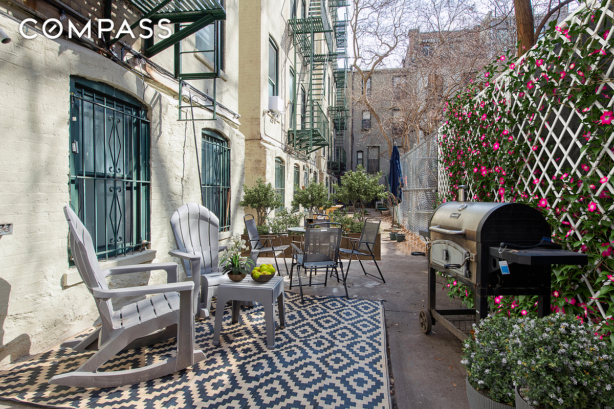 On the garden level, youll find an inviting living room and airy home office, with an approx 200 sq ft private patio just outside your door. There is a half-bath on this level, along with a giant storage nook with room for a full-sized fridge.