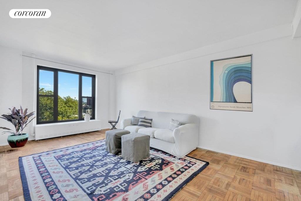 Back on the market just in time to see Clinton Hill in all its Spring glory!!!!! 355 Clinton Avenue, 7H is a flexible, spacious 2BD - 1BA apartment located in the coveted South Campus of the Clinton Hill Co-ops. With exquisite views through five oversized windows, the apartment has fantastic light and an airy, open feel. The living room boasts a picture window overlooking landmarked Clinton Hill, and its neighboring brownstones and churches amid the treetops. The second bedroom/home office is presently used as a dining room. This room feels like a corner room because of its adjacent windows providing cross breezes and panoramic views that create a more spacious feeling. The king-sized primary bedroom has two large closets and additional open views. The kitchen has a tumbled marble backsplash and ample cabinet storage. Hardwood floors, three spacious hall closets and a long foyer complete this well-proportioned apartment.