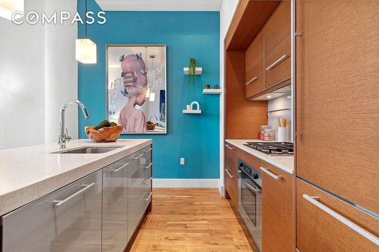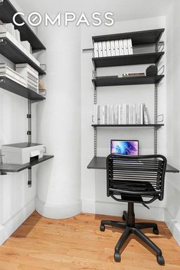 The luxurious bathroom is equipped with terrazzo-tiles, both a separate seamless glass shower stall and a free standing deep soaking tub. There is a beautiful custom sink area too. Additionally, the apt offers gorgeous solid oak floors, wonderful custom closet systems and your own washer/dryer too! To put the icing on the cake, you also have your own approx 30sf storage cage right next door to the apt.