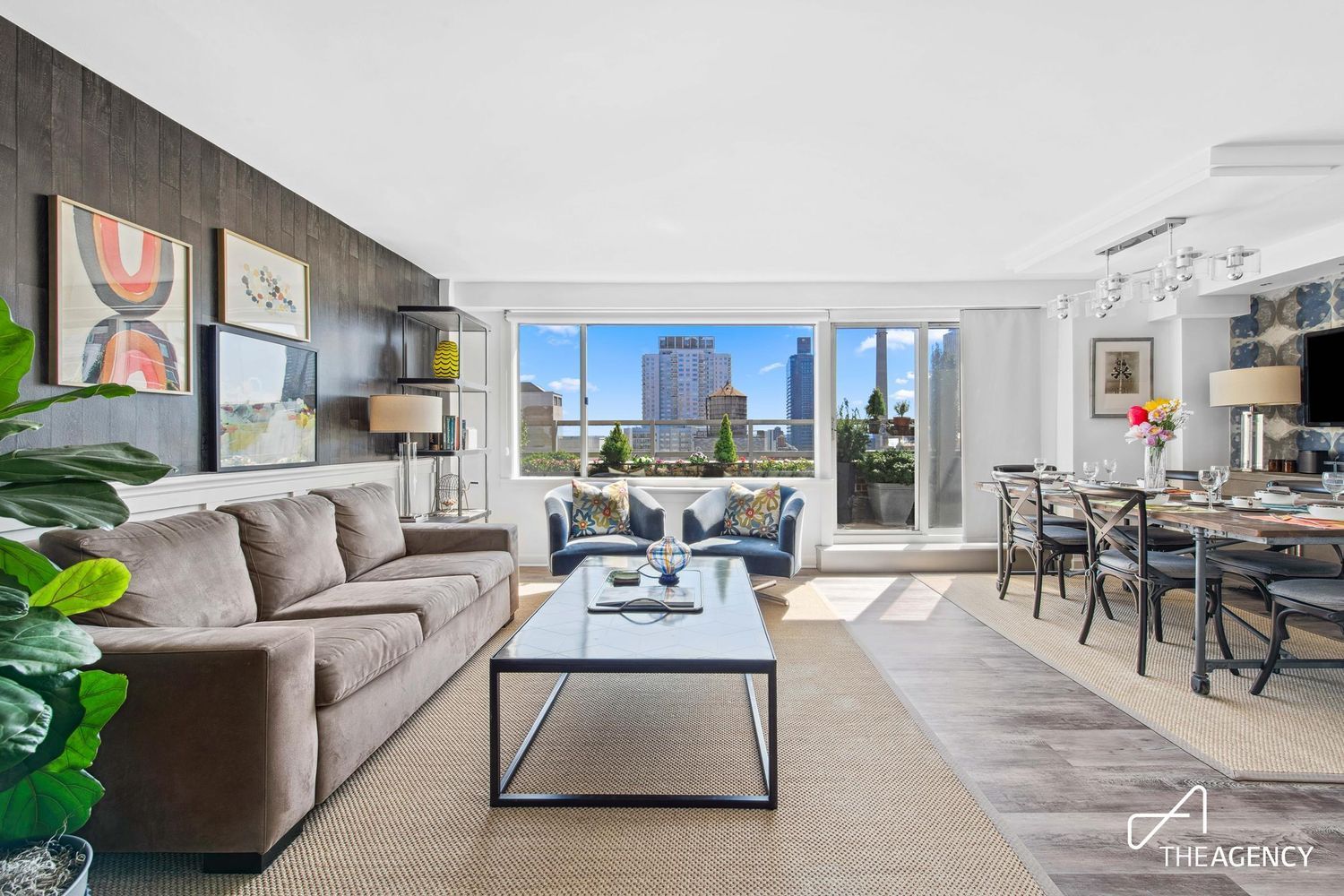 Welcome to Your Upper East Side Oasis! Perfectly situated in the heart of Lenox Hill, this beautifully renovated two-bedroom, two-bathroom home offers the space, comfort, and modern conveniences that make city living effortlessand truly enjoyable. Perched high on the 18th floor, this inviting home welcomes you with open views, abundant natural light, and a thoughtfully designed split-bedroom layout that balances privacy and togetherness. The expansive living and dining areas are ideal for both everyday living and memorable moments, flowing directly onto a spectacular 32-foot long private terrace. This sun-drenched outdoor retreat, accessible from both the living room and primary bedroom, is perfect for everything from morning coffee to evening gatherings under the stars.