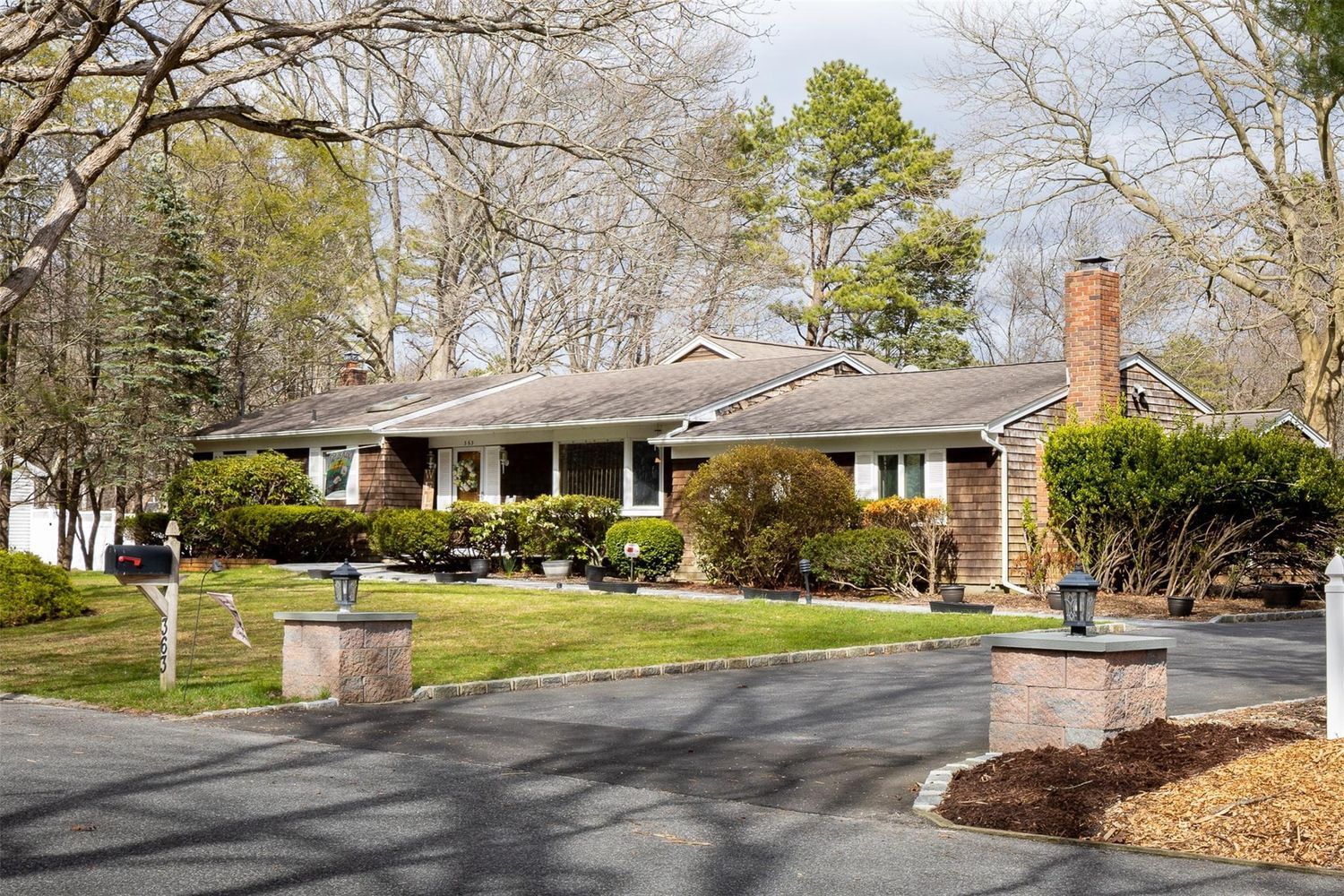 Welcome to this beautifully maintained 3-bedroom, 2-bath ranch-style home located in the desirable Patchogue-Medford School District. This charming residence offers a comfortable and thoughtfully designed living experience, featuring central air conditioning, radiant heat, and gleaming wood floors throughout. The chef’s kitchen includes gas cooking, dual sinks—one on the island for meal prep and another for dishwashing—ceramic tile flooring, and a built-in wine bar with granite countertops. Enjoy the ambiance created by recessed lighting, surround sound speakers, and skylights with ceiling fans that brighten and ventilate both the kitchen and the great room. The spacious great room also features cathedral ceilings, a wood-burning stove, and full-wall arched windows with sliders that open to a two-tier Trex deck—perfect for entertaining or relaxing outdoors. Additional highlights include a mudroom entryway, an extended driveway leading to a detached 2.5-car garage, an unfinished basement with abundant storage, and a sprinkler system connected to a private water well, while the rest of the home is serviced by public water. This home offers a wonderful blend of comfort, functionality, and style.