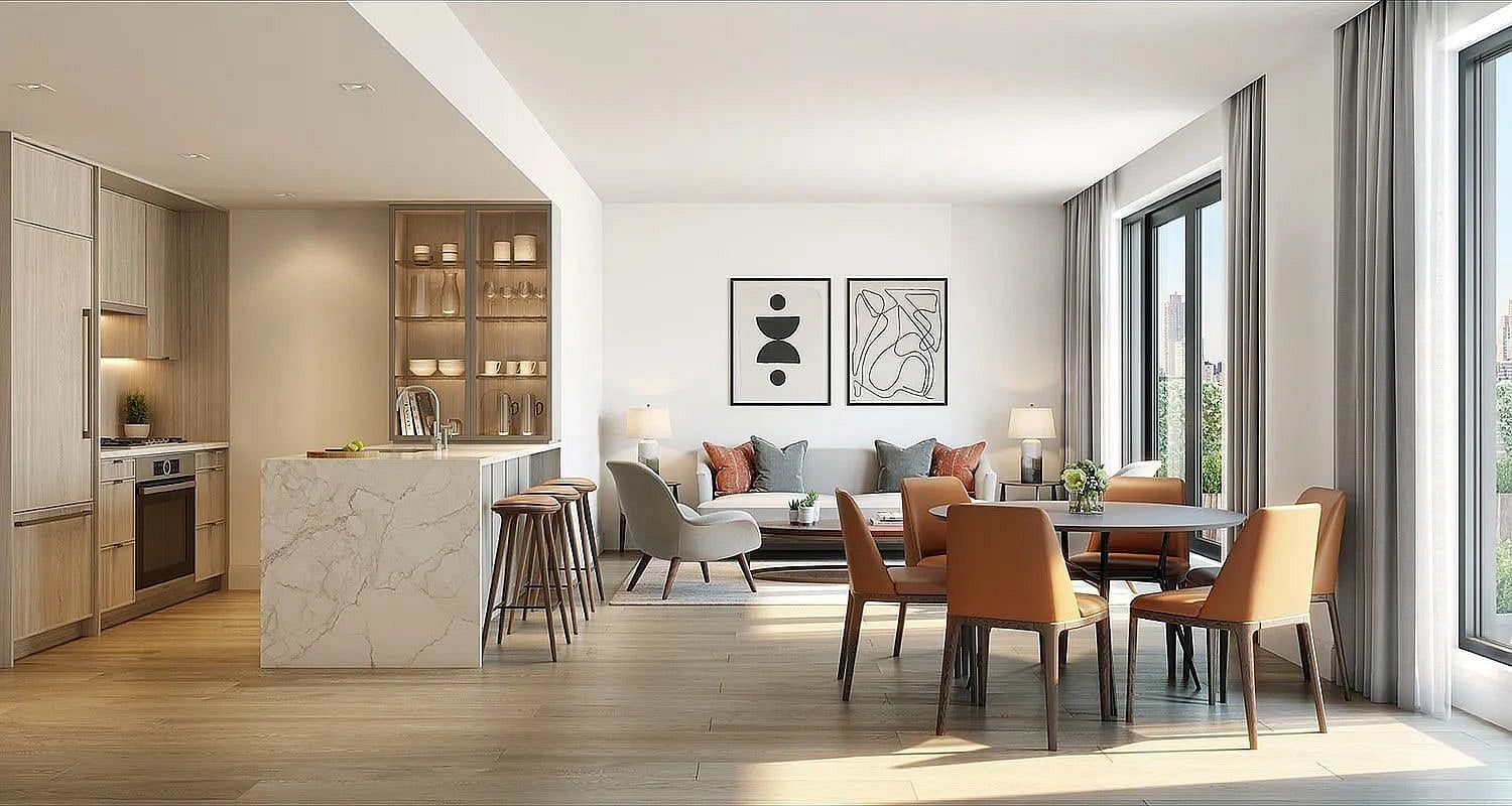 15-Year 421-A Tax Abatement Eligible TCO Expected Fall 2020 A refined studio residence in the heart of Long Island City, thoughtfully designed to maximize space, light, and modern comfort. This elegant 433 sq. ft. home features wide-plank white oak flooring, triple-pane floor-to-ceiling windows with bright southern exposure, central heating and cooling, and the convenience of an in-unit washer and dryer. A gracious entry foyer with a large coat closet leads into a beautifully proportioned living, dining, and sleeping area, bathed in natural light. The open kitchen is meticulously designed with custom cabinetry, sleek white marble countertops and backsplash, and a premium suite of fully integrated appliances by Bosch and Blomberg. Additional highlights include a generous reach-in closet and a spa-inspired full bathroom, complete with a Toto toilet, chrome fixtures, stone flooring, and custom vanity. The Neighborly is a boutique 7-story condominium nestled on a quiet residential block in Long Island City. Developed by New Empire Corp. and designed by acclaimed interior designer Paris Forino, the building offers a seamless blend of modern design and everyday livability. Residents enjoy an exceptional suite of amenities, including a full-time doorman, landscaped courtyard entrance, tranquil Zen garden, state-of-the-art fitness center, private lounges and study areas, childrens playroom, rooftop cabanas, multiple furnished rooftop decks with grilling stations, bicycle storage, dog run, private storage, parking, and a dedicated pet spa. Perfectly positioned just moments from local dining, cafes, and shops, and within minutes of the F/M/N/R/W subway lines, this home offers effortless access to Manhattan and beyond.