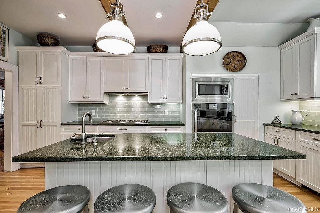With its exposed brick, original cabinetry, and handcrafted wood accents throughout, 37 Duneway is the kind of place that feels like a page out of a novel - nostalgic, grounded, and full of soul. Step into a massive living room with original hardwood floors, wood-burning fireplace, and cedar paneling, flooded with natural light from every angle. The kitchen has been lovingly updated with new appliances, a six-burner gas stove, and new windows, while still preserving the warmth and craftsmanship of the home’s original build. Formal dining feels timeless beneath the soft glow of a Japanese grasscloth-wrapped fixture, surrounded by vintage charm.