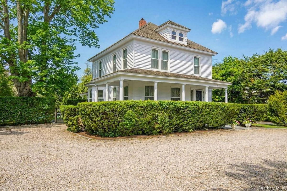Positioned on one of Southampton Village's most tranquil and coveted streets, this beautifully maintained traditional residence offers timeless style, complete privacy, and effortless proximity to boutique shopping, dining, and world-renowned ocean beaches. A gracious foyer introduces interiors defined by scale, light, and flow. The first floor is anchored by a grand living room and an elegant formal dining space, seamlessly connected and framed by soaring ceilings and expansive windows that bathe the home in natural light. The newly renovated eat-in kitchen is both sophisticated and functional, centered around a striking granite island and thoughtfully positioned with direct access to the patio and manicured grounds—ideal for seamless indoor-outdoor living. A versatile den and powder room complete the first floor. Upstairs, the home continues to impress with two generously proportioned guest bedrooms and a tranquil primary suite, each overlooking the peaceful, landscaped grounds. The second level is enhanced by abundant storage, including a walk-in hall closet with custom dual built-ins, perfectly suited for linens and laundry, and a well-appointed primary bath. Outdoors, the property unfolds into a true sanctuary. A heated in-ground pool is complemented by an outdoor shower, while an expansive wraparound porch and beautifully curated gardens create multiple settings for elevated entertaining, quiet relaxation, and al fresco dining in a picturesque environment. Additional features include central air conditioning, original hardwood floors, extra-wide baseboard moldings, and a full unfinished basement offering substantial potential for customization. Set within a special setting, schedule your private tour to experience it firsthand.