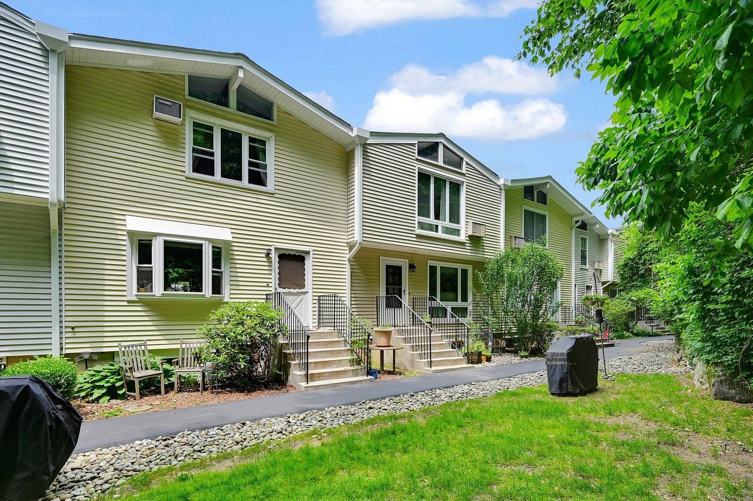 This condo is a beautifully maintained, 3 bed/2.5 bath, tri-level townhouse with vaulted ceilings in the bedrooms, a large deck, and an open floor plan on the main level , half bath ,and 3 bedroom ,2 full bath on second floor Building on previous updates to the kitchen and bathrooms (jacuzzi tub in hall bath), as well as the addition of casement windows, the hardwood floors throughout have been refinished, and the walk-out basement level has been modernized, adding a mudroom and airy office space to the already spacious home. Roof is also new (summer 2024). Laundry room and utility room lower level. Outside enjoy side yard, 2 pkg spaces, private grilling area, playground + basketball court. Additional Information: Amenities: Storage, Parking Features:1 Car Attached,