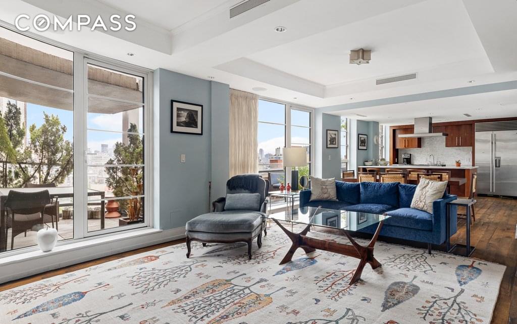 Other features of this tastefully appointed apartment include a multi-zoned, central air-conditioning system, recessed lighting, abundant closet space, a fireplace, solid reclaimed wood floors, and a sound system with built-in speakers.