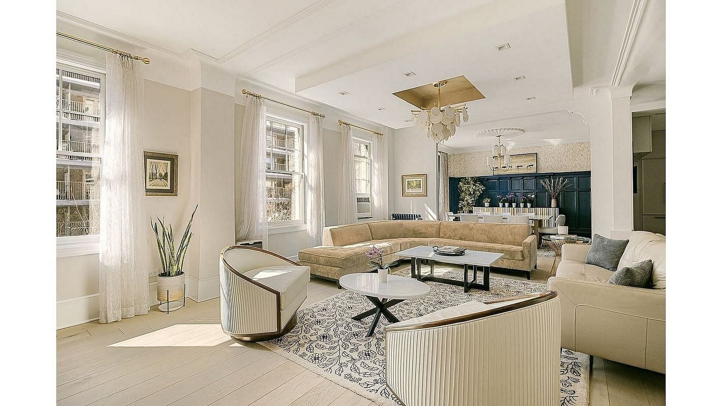 The residence occupies the fourth and fifth floors of a distinguished prewar cooperative built in 1909. The building reflects the architectural elegance of early twentieth century Manhattan, while the apartment itself has been thoughtfully renovated to meet contemporary standards of comfort and design.