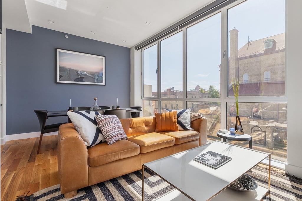 Unit 3 is a 2-bed, 2-bath, floor-through home, occupying the full 3rd floor of the building. The living room features a wall of south-facing windows, allowing the home to be flooded with northern and southern light from one end to the other. A balcony on the north-facing is private, with custom wood finishing, over-looking over gardens of PLG quiet and tranquil. Enjoy high-end appliances including Fischer & Paykel Refrigerator, Bosch dishwasher, GE kitchen cooking appliances, washer and dryer, beautiful brass kitchen accessories and island bar seating. Custom finishes such as remote controlled black-out shades, and face-recognition entry system, including creating custom codes for guests and visitors, round out modern-convenience touches. The home is also accessed by a private keyed elevator which also opens directly onto the common roof terrace where you'll enjoy expansive 360-degree views.
