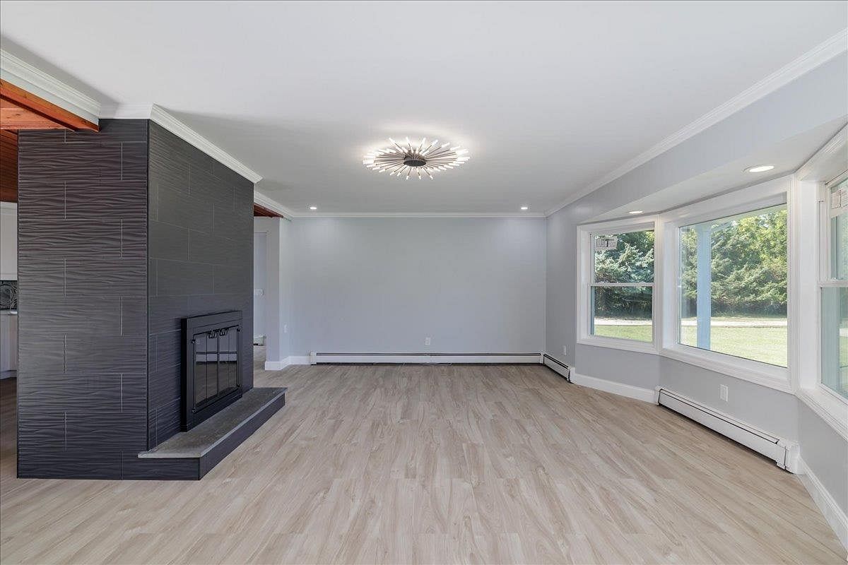 Designer Modern Farmhouse ranch set on over 3.35 Acres with farm and scenic views. Renovated 2023. Open concept Living room, Dining room and Kitchen, Gorgeous kitchen with quartz countertops, Stainless Steel Appliances, built in wine cooler, new windows throughout, new interior doors, new exterior doors, new flooring, updated designer baths, new boiler, new well pump, new hot water heater. Spectacular 20x40 in ground saltwater pool with Cambridge pavers patio. Front porch overlooking farm views. Close to McCabe beach or quick drive for incredible sunsets. Access to Resident only Town Beaches, Boat Ramps and Parks with Town Permit. Farm animals permitted. Marina, airstrips and trails nearby.
