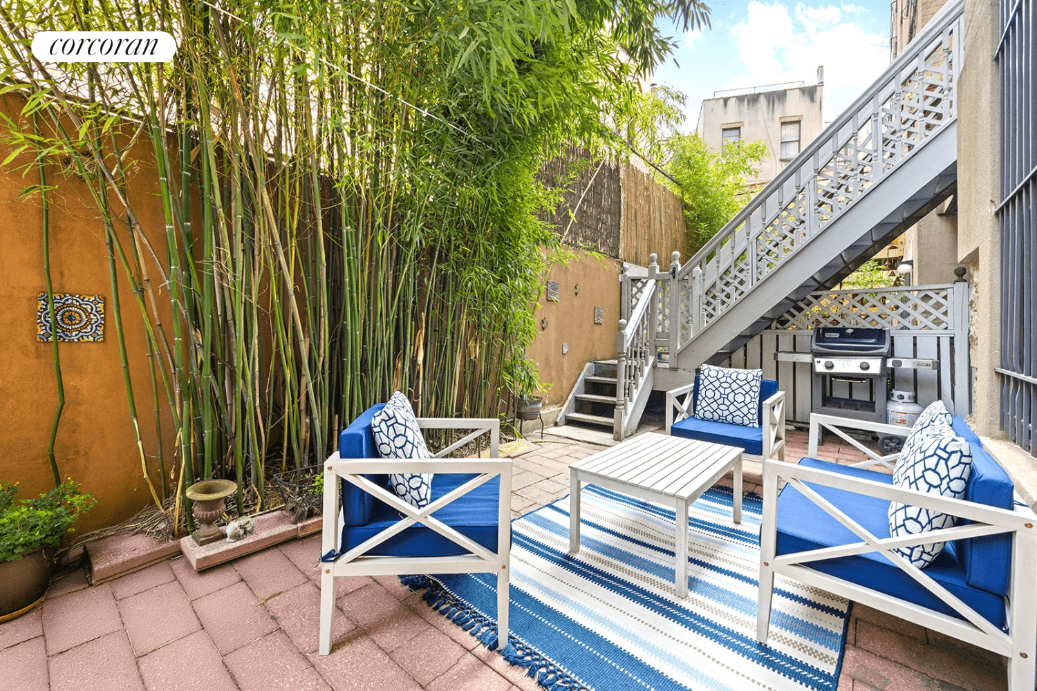 The kitchen features a sparkling glass backsplash, stone countertops, garbage disposal, water filter and a high-end stainless steel appliance package. The kitchen is open to the dining and living room, and enjoys serene, green views of your own private bamboo garden. A glass door leads you to both an upper deck and the spacious garden and patio, ideal for your morning coffee or entertaining under the stars. There are two generously-sized bedrooms, two full baths, a roomy office and amazing closet and storage space. Its many other features include CENTRAL AC, 9+ ft ceilings, beautiful millwork including a straight staircase, gorgeous solid core doors, deep-set window sills and charming window seats. All of this, plus the board is currently writing a policy to allow for an IN-UNIT WASHER/DRYER!