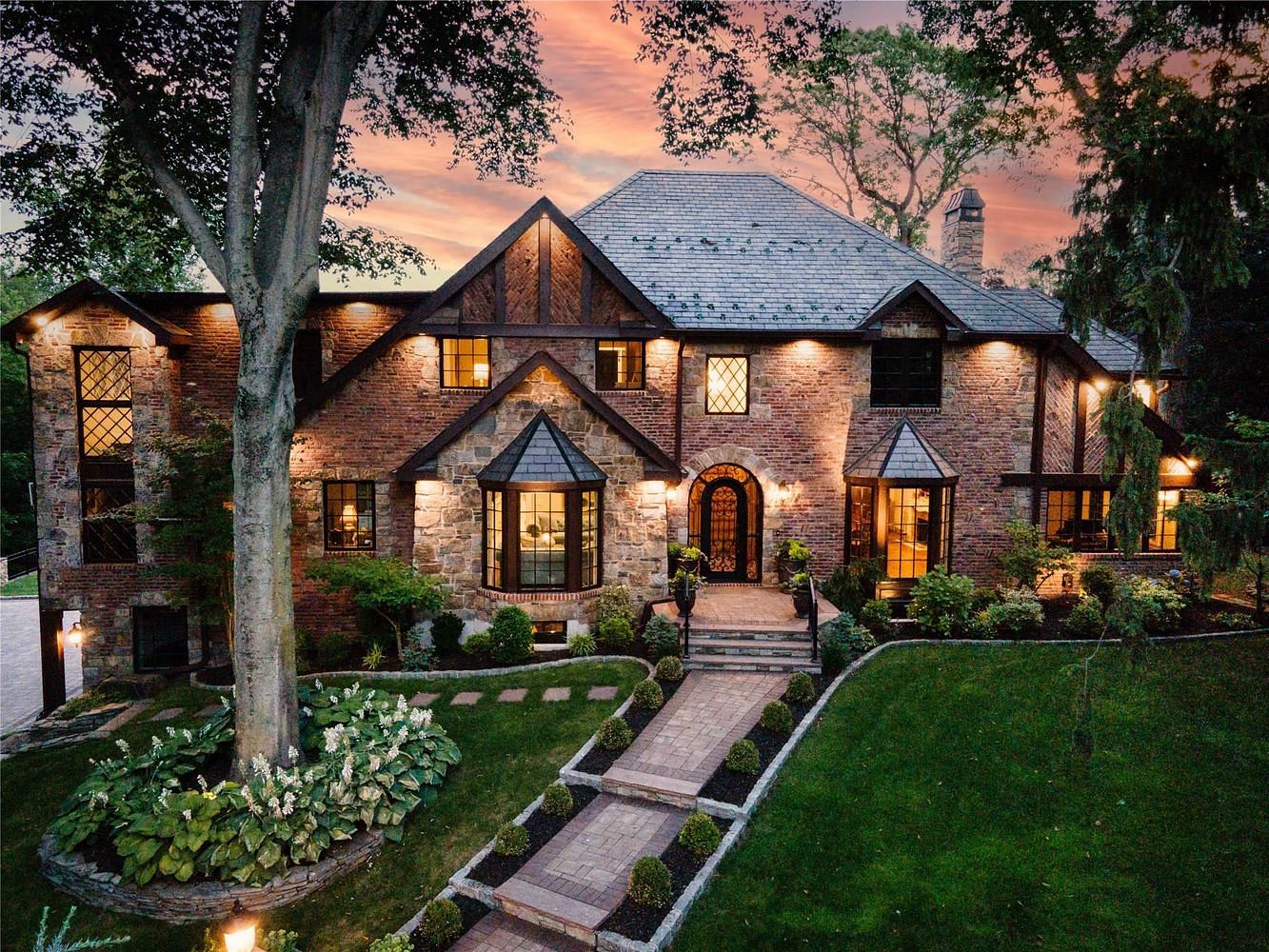 An architectural standout nestled on a quiet cul-de-sac within Manhasset’s coveted Strathmore Vanderbilt enclave, 38 Soundview Crest is a rare gem offering the perfect blend of timeless Tudor elegance and modern-day luxury across a spectacular .84-acre setting. Impeccably redesigned and masterfully expanded, this exceptional residence combines enduring architectural charm with today’s refined comforts. Greeting you upon arrival is a newly completed landscape and hardscape plan, featuring curated accent lighting, elegant stonework, and mature specimen trees that surround the home in natural beauty. Inside, a soaring two-story foyer opens to expansive living and entertaining areas, including a formal living room, a gracious dining room with fireplace, and a striking two-story family room with soaring, double-height paned-glass windows and French doors opening to the patio. The chef’s kitchen is both stunning and functionally designed, with modern beige cabinetry, premium appliances, a showcase butler’s pantry, and two sets of French doors leading to an expansive flagstone patio and connected yet distinct backyard areas ideal for entertaining or enjoying quiet moments outdoors. A beautifully finished marble full bath and a versatile main-level bedroom currently used as a home office offer flexible lifestyle options suited to today’s needs. The primary suite is a peaceful retreat with a spacious walk-in closet and a spa-inspired marble bath featuring a freestanding soaking tub. A second ensuite bedroom plus two additional bedrooms served by a shared marble bath complete the second floor with comfort and style. The legally finished walkout lower level enhances this home’s versatility, featuring a large recreation space, oversized glass doors that welcome in natural light, a full laundry room, mechanicals, and direct access to a rarely offered 3-car garage adjacent to an oversized storage room. This level is ideal for guest recreation, fitness, multi-use entertainment, and exceptional storage. Outdoors, the professionally designed, meticulously manicured grounds offer privacy, beauty, and generous space perfect for play, gatherings, lounging, or creating your own outdoor retreat. The expansive rear yard is large enough to accommodate a pool, presenting a rare opportunity to establish a true resort-like setting at home. Ideally located in close proximity to the Strathmore Vanderbilt Country Club (membership required) and just minutes from the Manhasset LIRR, town, world class shopping, dining, and major highways and hospitals, this is a truly remarkable opportunity to own a reimagined classic in one of the North Shore’s most coveted neighborhoods.