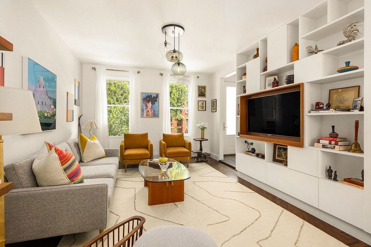 The owner's duplex is a sprawling 3-bedroom, 1.5-bathroom home with its very own garden oasis that truly delivers elevated versatility without compromise. Lofty ceilings amplify the atmosphere, while wide-plank hardwood floors lend a grounded warmth. As you enter up the stoop through the foyer, you're swept into the home's great room that seamlessly combines living and dining in one sweeping, light-filled space. Framed by oversized windows, the room boasts a gracious, open layout, copious storage, and enchanting views of the idyllic neighborhood of Park Slope. Tucked beside the stairs, between the dining and living areas, a lovely powder room completes this level.