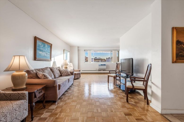 Welcome to upscale living in the heart of Woodside! This stunning 3-bedroom, 2-bath coop is located in a luxury high-rise building, offering the perfect blend of style, comfort, and convenience. Step into a sunlit home with Parquet flooring that exude warmth and sophistication. The building offers a suite of premium amenities, including a fully equipped gym, laundry facilities, and private storage to meet all your needs. Host unforgettable events in the party room, and enjoy a pet-friendly environment for your furry companions. Situated in one of Woodside's most sought-after locations, you'll have easy access to shopping, dining, and public transportation. Maintenance includes heat, water, electric and taxes.