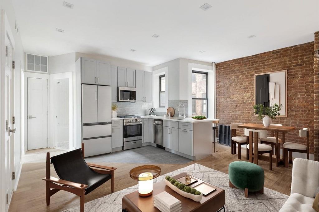Units feature refreshing aesthetics and comfortable, good flow layouts that maximize incoming natural light. Modern and pre-war elements, such as exposed brick and industrial finishes, complement each other to establish a contemporary and neutral design. Kitchens include custom designed cabinetry with soft closing hinges and tracks, premium natural stone countertop, and a top-of-the-line appliance package. Bathrooms feature white subway wall tiles, custom vanities, harmonizing traditional and modern elements. Additional unit amenities: hardwood flooring, high performance central air heating and cooling system, audio/video Aiphone intercom and in unit washer/dryer. This is a non-elevator building which features a common outdoor courtyard.