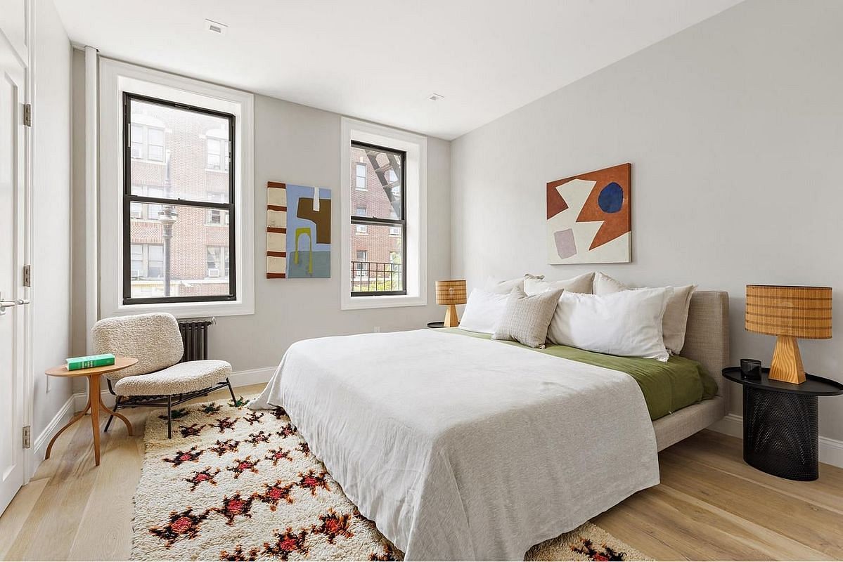 Units feature refreshing aesthetics and comfortable, good flow layouts that maximize incoming natural light. Modern and pre-war elements, such as exposed brick and industrial finishes, complement each other to establish a contemporary and neutral design. Kitchens include custom designed cabinetry with soft closing hinges and tracks, premium natural stone countertop, and a top-of-the-line appliance package. Bathrooms feature white subway wall tiles, custom vanities, harmonizing traditional and modern elements. Additional unit amenities: hardwood flooring, high performance central air heating and cooling system, audio/video Aiphone intercom and in unit washer/dryer. This is a non-elevator building which features a common outdoor courtyard.