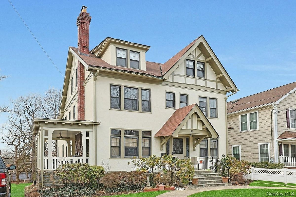Come fall in love with this grand 4,842 sq. ft. Colonial gem, ideally situated on a picturesque tree-lined street in New Rochelle. Blending timeless elegance with exceptional space, this expansive two-family residence is rich in architectural charm, featuring four inviting fireplaces, beautiful, beamed ceilings, and three full floors of sun-drenched living. The first floor (2,182 sq. ft.) welcomes you with an elegant entry hall leading to gracious formal living and dining rooms, each with its own fireplace. Step outside to a covered porch—perfect for al fresco dining and relaxing. A modern dine-in kitchen offers both style and functionality, while the spacious primary bedroom with stone fireplace, two additional bedrooms, hall bath, and convenient laundry/mudroom complete the level. The second & third floors (2,660 sq. ft.) provide incredible versatility, featuring a dine-in kitchen, formal dining room with fireplace, comfortable living room, three large bedrooms, a home office, and two full baths. The top floor adds even more flexibility with two additional bedrooms, bath and a bonus office space—ideal for extended family, guests, or work-from-home needs. Full basement: utility room, laundry room, Updated Weil McLean Gas Heating System & New Gas hot Water tank. Exterior Stucco freshly painted. A rare opportunity offering space, character, and multi-generational living potential in a prime location minutes from Glen Island Beach & Park, Long Island Sound beaches, marinas, waterfront parks, local shops, and Metro-North.