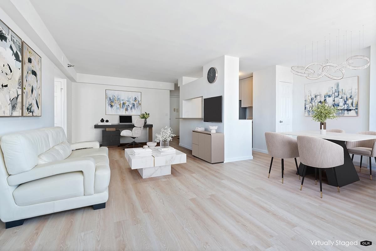 Introducing an ultra-high floor, dual exposure, excellent condition, oversized corner 1-bedroom unit located on 31st Floor of Citylights, Long Island Citys first luxury high-rise residential building located on the Hunters Point waterfront. The modern concept open kitchen comes with all new appliances and contemporary cabinets that offer abundant space. A very bright and large living room offers a spacious dining area (previously used as a home office/bedroom space) and has gorgeous flooring throughout. Oversized windows in the living room and primary bedroom provide rare 270 breathtaking Manhattan/East River and LIC/Queens views. The generous primary bedroom is sunbathed, quiet, and large enough to fit a king-sized bed, with ample closet space for all your storage needs. The apartment is a comfortable haven with photography worthy, breathtaking views through its oversized windows.
