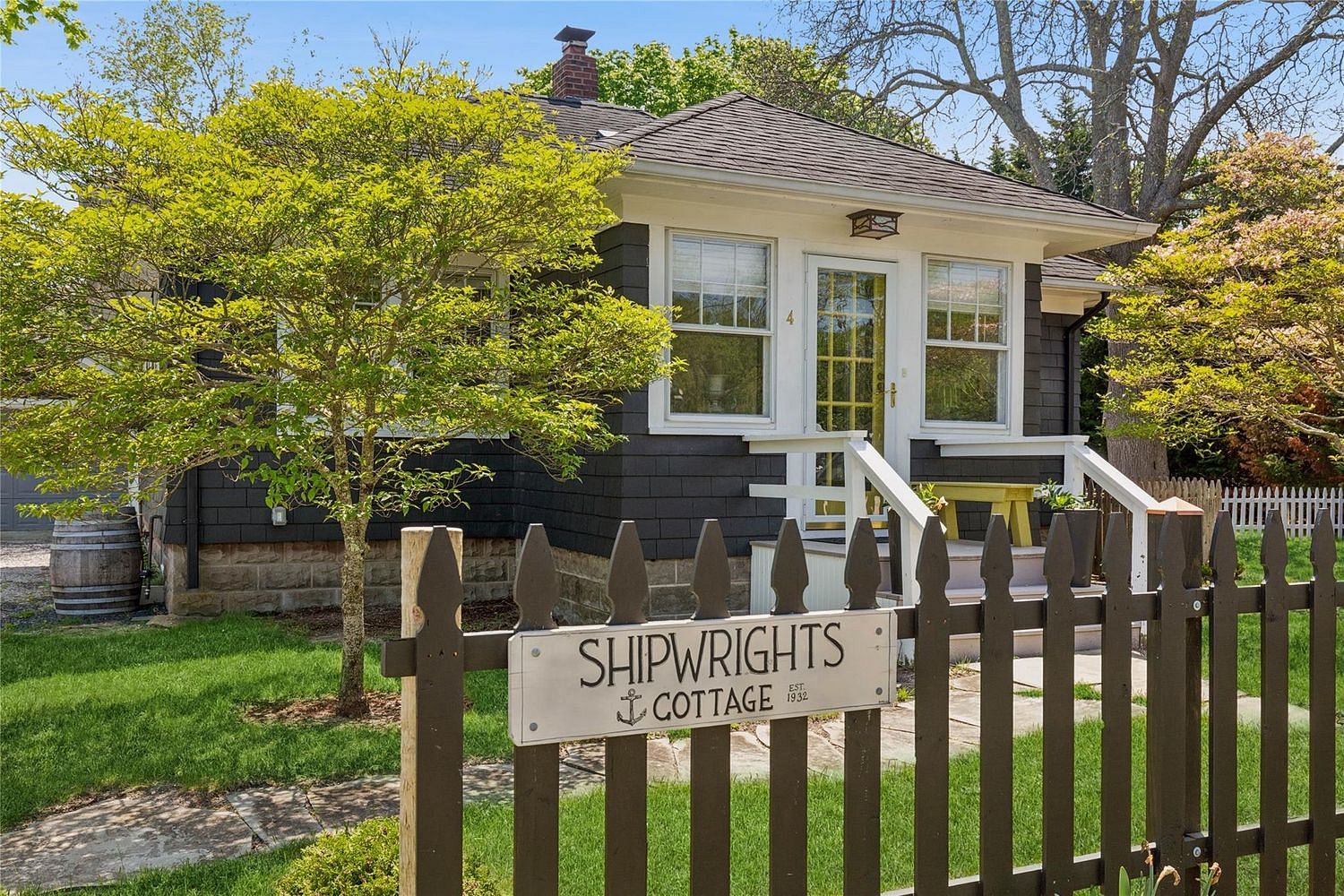 Welcome to the Shipwright's Cottage in East Quogue, a place where timeless charm meets effortless modern living. This two-bedroom, one-bath retreat was originally built in 1932, offering an intimate yet airy atmosphere for those who seek more than just a home—those who seek sanctuary. Tucked south of the highway in one of the area's most peaceful, bike-friendly enclaves, the location offers rare access to a quieter rhythm of Hamptons life. Picture your mornings unfolding with a serene stroll into the heart of East Quogue, a town that pulses with character all year long. Local shops, beloved restaurants, farm stands, and a full calendar of community happenings keep the energy alive while preserving a small-town soul. Venture inside and feel the warmth. The open layout invites movement and ease, where neutral palettes, rich wood floors, and curated finishes create a sense of calm. Oversized, elegantly framed windows fill the space with natural light and frame lush garden views in every direction. Each room is designed to reflect not only beauty but intentionality. Beyond the threshold, the magic continues. The private, fenced yard offers both security and serenity—perfect for pets, gatherings, or quiet reflection. A detached garage sits ready to evolve into your creative studio or become the kind of party barn that brings your vision to life. For those called to the soil, a spacious garden shed with a potting area and raised vegetable beds await your touch. Set among streets steeped in heritage, the property enjoys seamless access to train lines and 27 East, keeping you connected while helping you sidestep the seasonal rush. Water lovers will appreciate the close proximity to two established marinas and the East Quogue marine park, making days on the bay feel effortless. As the neighborhood grows with signature projects like the Hampton Shipyard restoration and The Hills Luxury Golf Course, this home becomes more than a place to live. It becomes part of a story unfolding—a story of possibility, peace, and lasting value.