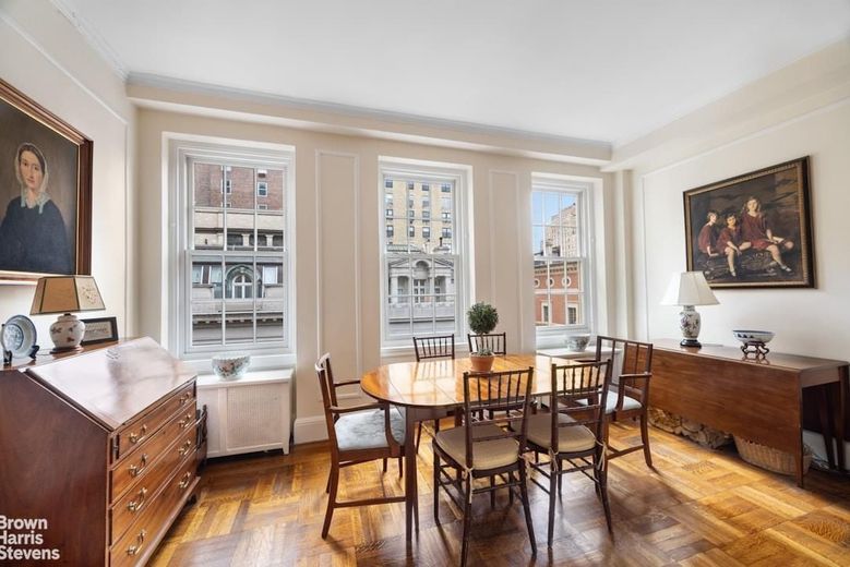 4 East 95th Street was designed in 1922 in the Georgian style by prominent architect James Carpenter and features 24-hour doormen and a live-in super. The apartment is in a prime Carnegie Hill location right next to Central Park, the Jacqueline Onassis Reservoir and bridal bath, the tennis courts, 96th street playground, as well as neighborhood schools, plenty of restaurants and shops, and of course some of Museum Miles most famous museums like The Met, The Guggenheim, and the Cooper-Hewitt to name a few. The building has storage, bike storage and additional laundry in the basement. Pets and 50% financing is allowed. There is a 2% flip tax.