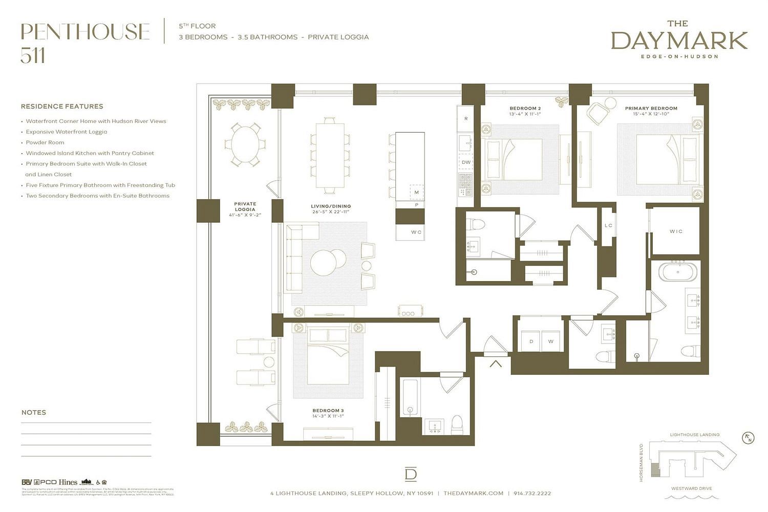 The Daymark brings luxury waterfront condominium living to the banks of the Hudson River in Sleepy Hollow, New York. Envisioned by architecture firm COOKFOX, The Daymark offers modern day comforts while harnessing the breathtaking beauty of its surroundings. Interior materials have been chosen to reflect the organic tones and textures of its waterfront setting. Our uncompromising commitment to quality extends into each uniquely designed residence with spacious open floor plans and crafted, quality materials. Fully-equipped kitchens offer state-of-the-art integrated appliances while bathrooms offer a private oasis clad in marble with floating tubs. The Daymark lifestyle extends beyond each residence with indoor/outdoor amenities including lobby with concierge, fitness center with yoga studio and swimming pool with stunning views. The indoor and outdoor amenity spaces have been thoughtfully curated to support life, work and a passion for healthy, balanced living. Additional Information: Amenities:Storage,
