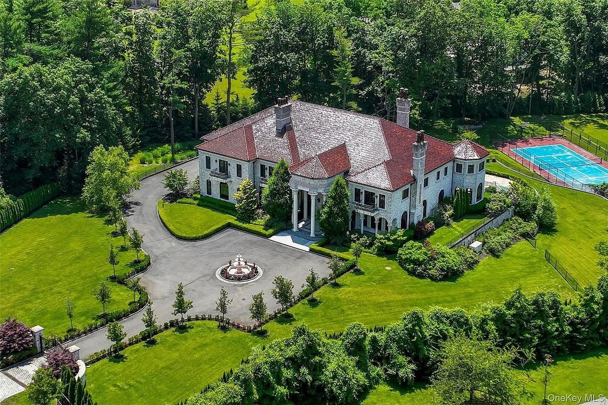 OLD BROOKVILLE Far from ordinary, this extraordinary custom built brick Mansion is designed for luxurious entertaining, Set on a private cul-de-sac, wrought iron gates open to the courtyard of this pristine 3acre estate surrounded by lush landscaping and colorful gardens. You'll greet your guests in the breathtaking Foyer where soaring domed ceiling sits 30' above a double bridal staircase. Throughout the home, each room is spacious and beautifully detailed. Featuring mahogany doors & trim, mahogany & marble floors, coffered ceilings, private Library, 2 story Great room, chef's Kitchen with abundance of appliances, 7 Bedrooms with private Balconies,6 full Bathrooms, 5 half Bathrooms, 5 Fireplaces, Elevator to all floors ,and 5 car heated garage. To cater to your entertaining needs, the walkout lower level features a banquet hall capable of hosting hundreds of guests, complete with a commercial-grade prep kitchen, a walk-in pantry, and 2 separate multi-stall bathrooms and 500 bottle Wine Cellar. This lower level opens up to the Pool, Pool House, and Tennis Sports Court, providing ample outdoor enjoyment. If you seek something truly exquisite and extraordinary, 4 Valentine Farm Court is sure to win your heart and leave a lasting impression on your guests.