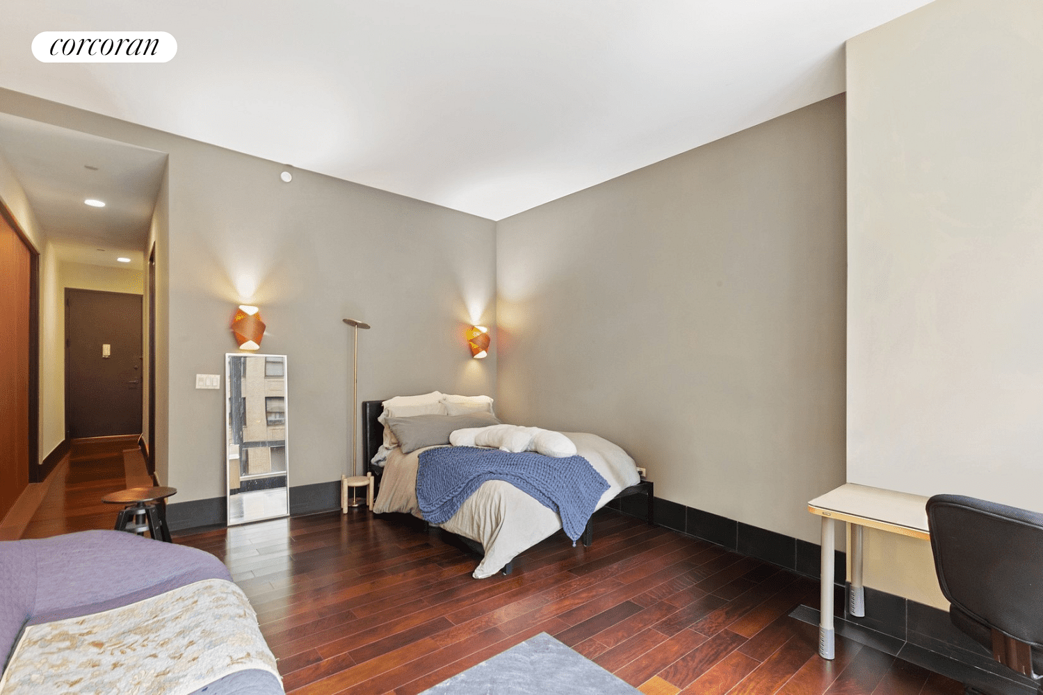 Oversized windows framing tranquil city views and flooding the space with natural light Soaring ceilings and rich hardwood floors, creating an open, airy environment Sleek open kitchen with premium Sub-Zero, Miele, and Bosch appliances, ideal for entertaining or daily convenience Spa-inspired bath with soaking tub and glass-enclosed rain shower In-unit washer/dryer for ultimate modern convenience Efficient, versatile layout optimized for both personal use and rental income Building & Amenities: