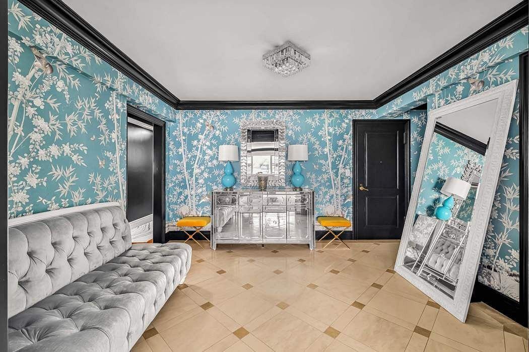 Off the kitchen, the fourth bedroom doubles as a home office and includes its own full bath, built-in desk and bookcases, an oversized closet, and a washer/dryer. Additional features in the apartment include through-wall A/C units, solid hardwood floors, custom crown moldings and built-ins, and abundant storage throughout. This pet-friendly building also welcomes pieds--terre, investors, and international buyers.