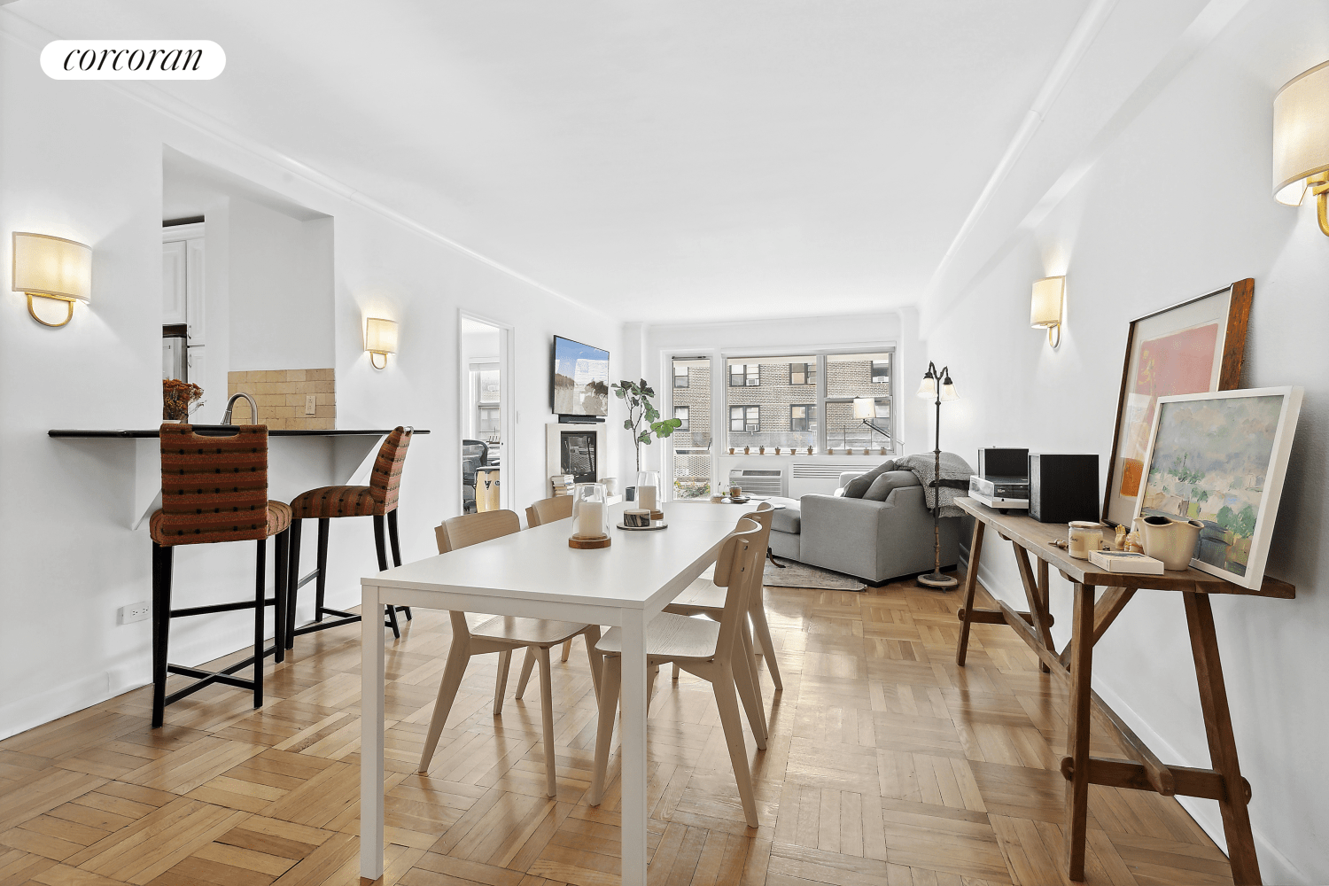 Welcome to this beautifully renovated two-bedroom, two-bathroom home at 40 East 9th Street, located in the heart of Greenwich Village. Every detail has been thoughtfully curated, from the open pass-through kitchen with stainless steel appliances, granite countertops, and custom cabinetry. The primary en suite bathroom is elegantly finished in marble, while the second bathroom features travertine and a luxurious deep soaking tub. Apartment 5A is filled with natural light and boasts a south-facing balcony perfect for relaxing or enjoying the view. The living area includes an electric fireplace framed in custom marble, providing cozy warmth during the winter months. The layout is exceptionally functional, offering a spacious main room large enough for living, dining, and even a home office setup. Abundant closet space adds to the home's appeal. The building is ideally situated in central Greenwich Village, with a lush garden entry set back from the street for a serene welcome home. It is a full-service building with excellent amenities, including an on-site garage and two convenient entrances-one on 9th Street and another on 8th Street. Don't miss this incredible opportunity to call a prime Greenwich Village residence your home!