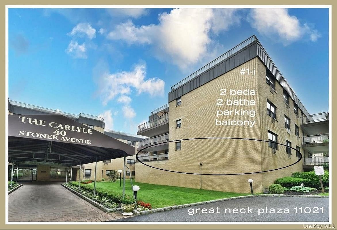*new price* Great Neck Plaza 11021 - This might be the one you've waited for: The Carlyle aka 40 Stoner #1-i // Proud to present this 2 Bed - 2 full Bath grand {approximately 1200+ sq ft} co-op apartment with a generous Front Facing Balcony! // Located on the first floor but raised up a level, you Enter thru your hallway into a closet lined Foyer // The Living-Dining areas lead to a spacious eat-in Kitchen with a window by the sink // The Primary Bedroom is unusually large + features an en-suite full Bathroom // Dark wood floors anchor the space adding an elegant look + feel // Upscale Easy living Awaits: Laundry is conveniently located on the floor, Immediate Indoor Parking in a heated garage is yours {$125 a month}, Double Elevators are a rare, but thoughtful amenity not to mention there is a resident-only GYM off the main lobby, so if your focus is good health + wellness... welcome right in! // Helpful Live-In Super on call // Monthly of only $1126.52 covers heat, hot water, cooking gas + real estate taxes {deductible} // Great Neck South SD or optional North, Baker Elementary // 2 Shorts Blocks to the LIRR with direct routes to PENN + Grand Central Madison // Located in the Plaza with the Park, Restaurants + Shops // All the Great Neck Park Department Activities are yours for the taking {Concerts, Parks, Pools, Libraries, Culture} // Arrive home thru a Circular driveway on a street lined with mature trees {which the apartment overlooks} lined with multi-million dollar private homes // All Fabulous:)