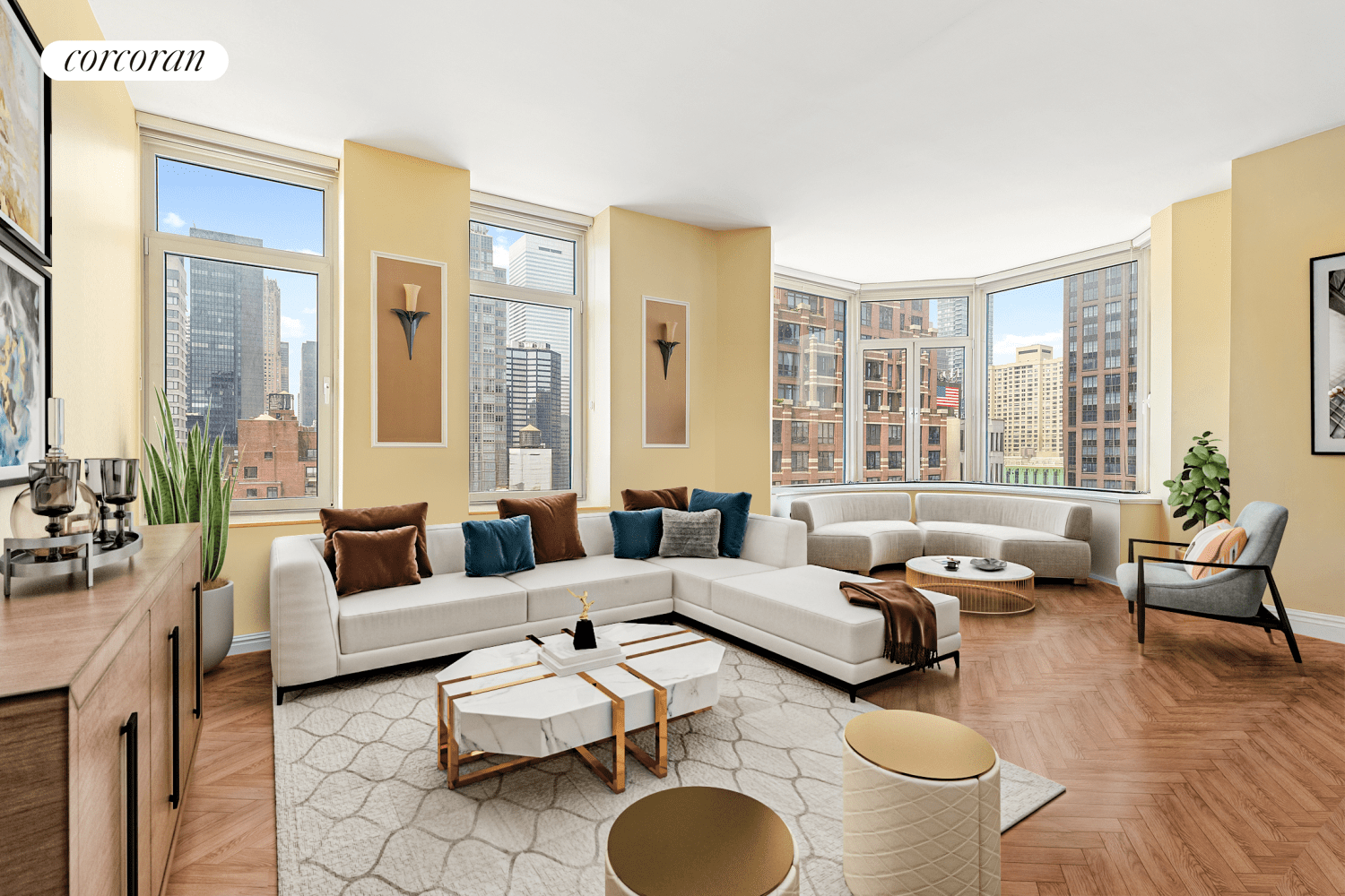 Ready to Sell! This spacious and gracious 2 bed / 3 bath home at the Grand Beekman Condo spans 1812 SF, features walls of windows, showcases views of the Manhattan skyline and is priced to sell. The layout is extremely flexible, allowing for multiple living and dining options. This uniquely designed home welcomes you with a gracious entrance foyer which leads into an oversized living room offering plenty of seating, including a fabulous bay windowed seating area. The walls between the living and dining room have been thoughtfully removed, creating a loft-like layout, both elegant and inviting and allowing natural light to flow into the apartment throughout the day. The windowed eat-in kitchen has been upgraded with extended counter space, loads of cabinetry, a generous pantry, and upgraded Viking and Bosch appliances, including a wine-cooler. Adjacent to the kitchen, is a full-sized dining room which comfortably seats 8-10 and features floor-to-ceiling French doors opening onto a Juliet balcony. Both bedrooms are privately positioned apart from the main living area. Bedrooms are very generously proportioned, with oodles of closets, en-suite baths and floor to ceiling French doors facing North, onto a quiet block off Beekman Place. The expansive primary suite and spacious second bedroom each feature their own en-suite full baths. An additional third full bathroom, classic herringbone floors, abundant closet space and a new washer/dryer complete the home's impressive offerings.
